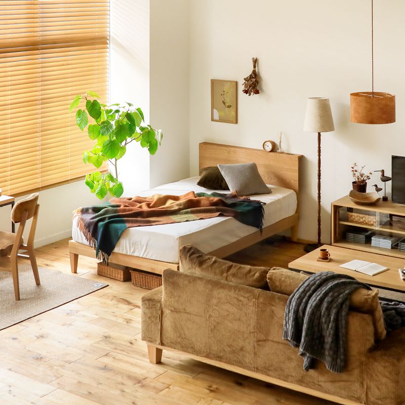 SPECスペック サイズ 本体:幅 100cm × 奥行き 206cm × 高さ 84cmベッド下スペース:18cm【梱包サイズ】幅 106cm × 奥行き 72cm × 高さ 14cm 幅 104cm × 奥行き 14cm × 高さ 12.5cm 幅 198cm × 奥行き 13cm × 高さ 12.5cm 幅 100cm × 奥行き 99cm × 高さ 9.5cm カラー ナチュラル 素材 ヘッドボード、フットボード、脚部:アッシュ無垢材(オイル仕上げ)サイドフレーム:アッシュ突板(オイル仕上げ)すのこ:LVL 耐荷重 約 100kg 備考 本体重量:44.4kg組立品(組み立て時間:2名で20分程度)付属工具:六角レンチ 必要工具:プラスドライバー2口コンセント(1500W)こちらの商品は天然木を使用しているため、木目やフシの風合い、色味などが画像と異なる場合がございます。 布団を敷くことが可能です。【配送について】離島へのお届けは対応しておりません。 お届けについて こちらの商品は「アートセッティングデリバリー(ASD)社」にてお届けいたします。ASD社の提供サービス都合により、一部地域において配送ができない曜日・時間帯がございます。対象地域についてはこちらをご覧ください。 マットレス サイズ幅 97cm × 奥行 195cm × 高さ 20cm梱包サイズ:幅 35cm × 奥行 35cm × 高さ 102cm 素材表面生地:ポリエステル100%(ニット生地)中材:ウレタン(比重 25kg/立方メートル)、ホワイトフェルトコイル数:741個鋼線種:SWRH62Bコイル高さ:17cm巻き数:6巻線径:2.0/1.6/1.7/1.6/2.0通気口:3Dメッシュ 備考重量:21.8kg原産国:中国ゾーン構造エッジサポート保証期間:2年真空圧縮ロール梱包 ご一緒にいかがですか?下記リンクより、ベッド下収納のページをご覧いただけます。 2点セットはこちら 4点セットはこちら カテゴリー:ベッドアッシュ無垢材のヘッドボードが美しい「Re:CENO product」のオリジナルベッドRe:CENOオリジナルベッド「folk(フォーク)」に、新たにナチュラルカラーが加わりました。厚さ2cmのアッシュ無垢材を贅沢に使用し、こだわりのオイル塗装を施すことで、シンプルな形状のベッドでありながら、やさしく爽やかな風合いを持ち、素朴な温かみを存分に感じさせるデザインに仕上げています。布団があることでほとんどが隠れてしまうベッドデザインは、ヘッドボードの印象がすべてといっても過言ではありません。アッシュ無垢の力強さを感じられるヘッドボードは、寝室デザイン設計において最も重要で、何気ない寝室を落ち着きのある空間にしてくれます。ヘッドボードの高さは、床から84cm。厚めのマットレスを使用しても高さに余裕があるので、ヘッドボードが隠れず、アッシュ無垢材の美しさを損ないません。また、クッションや枕を背もたれにして、就寝前にもたれながら本を読むような使い方もできます。無垢材ヘッドボードにつけた奥行きがちょうどいい「10cm棚」無垢のヘッドボードは棚のあるものが少ないですが、このベッドには奥行き10cmの小さな棚をつけました。10cmは、目覚まし時計やフレグランス、文庫本などちょっとした小物を置くのにちょうど良いサイズ感。「寝室が狭くて、コンパクトなベッドしか置けない」という方もいらっしゃると思いますが、この10cmがあるだけでベッド周りが意外なほど片付きます。フラットに配置されたコンセントも2口付けているので、就寝前の携帯電話の充電や、ベッドサイドの照明設置までまかなえて、ベッドタイムをしっかりとサポートしてくれます。ヘッドボード以外の部分にも、実はこだわって作っています。通常、少し内側に配置されることの多いベッド脚ですが、このベッドは四隅に寄せたデザイン。端に寄せることで、整頓された印象を感じることができ、より洗練された印象を感じさせてくれます。ほとんど見えない部分ですが、これも実は専用設計の意外なこだわり部分です。くっつけたり、離したり。生活スタイルの変化にフィットします。長く愛用いただける工夫として、2台のベッドをぴったりとくっつけられるように設計しています。ベッドは寝室で使う家具であり、また、寝心地という部分はマットレスに多くの部分を委ねられている家具ですから、基本的に傷みづらく、買い換える必要がない家具です。ということは、1台ベッドを買ったならできるだけ長く使っていきたいし、摩耗性を鑑みても十分に長く使えるものです。ただ実際は、多くの人がベッドを買い換えます。問題になるのは、サイズです。1人暮らしの小さい部屋の時にはシングルしか置けなかったけど、2人で暮らすようになったらダブルで寝たい。これが最も多いです。また、2人のときにはダブルで良かったけど、子供ができたらダブルだと結構狭くて、もうすこし大きいベッドが欲しくなる。この点でまたもや買い換える必要が出てきます。全然まだまだ使えるのに、これではもったいないですよね。ということで、地味ではあるけど結構重要なデザインとして、2つのベッドがぴったりとくっついて、かつ、高さも揃うようにしています。シングルを2つくっつければワイドキングサイズになりますから、生活に合わせて買い足すという