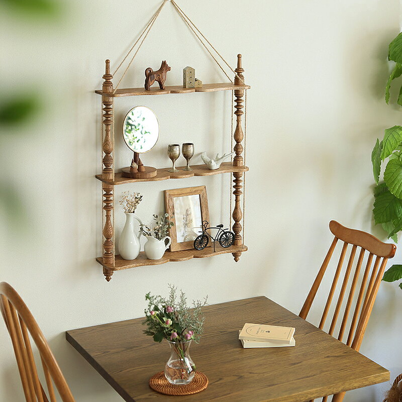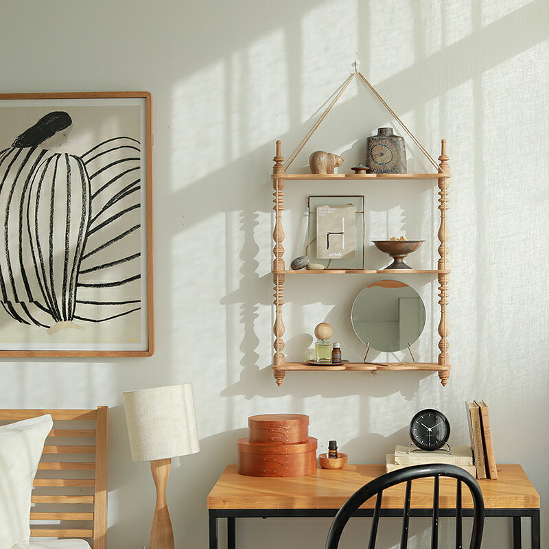 SPECスペック サイズ 幅 48cm × 奥行き 12.5cm × 高さ 65cm棚板厚:8mm梱包サイズ:幅 53cm × 奥行き 22cm × 高さ 10cm カラー ナチュラル ブラウン ヴィンテージレッド 素材 本体:天然木オーク無垢材紐:麻 耐荷重 棚板1枚あたり:1kg 備考 本体重量:1.5kg梱包重量:2kg組立品(組み立て時間:1名で20分程度)必要工具:なし付属品:麻紐壁の下地材を確認し、適切な固定方法にて設置をお願いいたします。結んだ紐が解けないように強く結び、全体が平行になるようにしてご使用ください。棚板の片方に重さが偏らないように、左右に物を乗せてご使用ください。取り付け用フックは付属しておりません。【無垢材の特性について】天然木を使用しているため、木目やフシの風合い、色味などが画像と異なる場合がございます。極度に乾燥させた場合、木材にヒビが入る場合がございます。乾燥によるヒビ割れは、お手入れによって防ぐことができます。 カテゴリー:シェルフ・ラックアノニマス(作者不詳)な意匠を持つ「ナポレオンシェルフ」を復刻しました。オリジナル家具シリーズ「Re:CENO product」からアンティーク意匠を復刻したウォールシェルフ「H/A(エイチエー) WALL SHELF」。このシェルフは、アノニマス(作者不詳)なフランスのアンティーク家具を復刻したもので、19世紀ナポレオン三世時代に多く作られた事から「ナポレオンシェルフ」と呼ばれ、愛されているシェルフを独自に復刻しました。独特の繊細な彫りが入った支柱が特徴で、その優美な意匠デザインは、一般的なシンプルなウォールシェルフとは異なる趣きを感じさせてくれます。支柱のデザインは優美でとても美しく、シンプルな壁に掛けるだけで、お部屋に複雑性と趣きをプラスできるので、とても良いアクセントアイテムになります。前述のとおり、この美しい意匠デザインは、新たにデザインを起こしたものではありません。19世紀のナポレオン三世時代に多く作られたことから名付けられた「ナポレオンシェルフ」と呼ばれるアンティーク家具をイメージソースにした復刻デザインです。ナポレオンシェルフは「これ」というような決まったデザインがあるわけではなく、特徴的な支柱を組み合わせた意匠性を持つシェルフの総称です。この新作シェルフも、アノニマスデザインと呼ばれる「誰がデザインしたかが、はっきりとしないデザイン」のアンティークから発想しています。北欧の家具のような「広く多くのファン」を持つものではありませんが、特徴的で美しい装飾デザインは、アンティーク好きな人から熱く支持されており、その美しさは、リセノの目指すナチュラルヴィンテージの世界観ととても親和性が高いと感じています。お部屋に趣き、複雑性、ぬくもりを与えてくれる吊り下げる「ディスプレイ棚」です。さて、そんなアノニマスデザインから復刻を行った「ナポレオンシェルフ」。その良さは、何よりもお部屋のアクセントになり得る趣き、複雑性、ぬくもりといった、お部屋への彩りを与えてくれることです。リセノが提唱している「ナチュラルヴィンテージ」では、シンプルなお部屋にデザイン性が高いもの、複雑な形状のもの、ヴィンテージなどの味わいの深いもの、自然素材などの「アクセントアイテム」を取り入れるという基本概念があります。そこで、今回のナポレオンシェルフは、整った印象のシンプルなお部屋に加えることで、・デザインの「複雑性」・ヴィンテージを感じさせる「趣き」・手仕事の「ぬくもり」というアクセントを加えるのに最適です。大きく、寂しく、ぽっかりと空いてしまいがちな場所に、このディスプレイ棚を加えることで、その場所が「お部屋のアクセント」になるのです。お部屋のどこに飾ると、最適? いくつかの事例を見ていきましょう。H/A WALL SHELFを実際に使うと、どのようにお部屋に彩りが加わるでしょう。実際にお部屋に配したところを見ていきましょう。もっとも入れていただきたい場所は、サイドボードなどアートを飾る場所です。リビングやダイニングの壁部分は、ドアから入ってきた時や、普段の生活でもよく目に入る場所です。この場所は「フォーカルポイント」と呼ばれ、インテリアにおいての一等地です。フォーカルポイントを美しく飾ることを意識することで、インテリアのクオリティはもっとも高まりやすいため、ぜひこの場所に配していただきたいなと思います。もうひとつのおすすめ場所は、ソファー横などの壁です。ソファー横や、ソファー後ろなどは、壁がぽっかりと空いてしまいがちです。その場所に配置してもらうことで、ソファーまわりを華やかな印象にすることができます。寝室のドレッサーやデスク横などの空間を華やかにするのにも最適ですし、ダイニングテーブルの横に掛けるのも、おすすめです。素敵なインテリアコーディネートを実現するためには「壁のぽっかりと寂しい印象をどう失くすか」は、常に課題になります。その点、H/A WALL SHELFであれば、シンプル