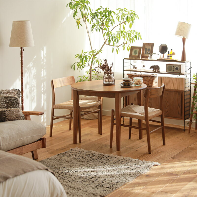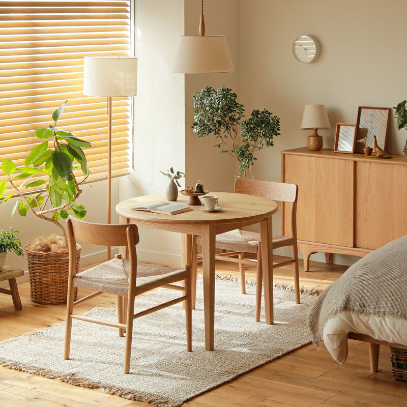 SPECスペック サイズ 【本体サイズ】本体:幅 90/140cm × 奥行き 90cm × 高さ 68/72cm伸長部分の板:幅 50cm × 奥行き 90cm × 高さ 4cm天板厚:2.5cm(固定用金具含め:約 4cm)【梱包サイズ】幅 96.5cm × 奥行き 96.5cm × 高さ 17.5cm カラー ナチュラル ブラウン ヴィンテージレッド ブラック 素材 天板:天然木オーク突板(ウレタン塗装)脚部:天然木オーク無垢材(ラッカー塗装)フック:鉄 備考 【重量】本体:約 35kg(伸長時)伸長部分の板:約 6.4kg梱包:約 37kg組立品(組み立て時間:2名で10分程度)付属工具:六角レンチ必要工具:なしこちらの商品は天然木を使用している為、木目やフシの風合い、色味などが画像と異なる場合がございます。 ダイニングチェアなどは全て別売りです。 お届けについて こちらの商品は「アートセッティングデリバリー(ASD)社」にてお届けいたします。ASD社の提供サービス都合により、一部地域において配送ができない曜日・時間帯がございます。対象地域についてはこちらをご覧ください。 こちらの商品は、サイズ展開がございます。下記リンクより、通常サイズのページをご覧いただけます。 ナチュラルカラーはこちら ブラウンカラーはこちら ヴィンテージレッドカラーはこちら ブラックカラーはこちら カテゴリー:ダイニングテーブルfolkダイニングに「コンパクトタイプ」が登場。小さなダイニングにも置きやすく。リセノでも特に人気の高い「伸長式ダイニングテーブル folk(フォーク)」に、ひとまわり小さな「コンパクトサイズ」が登場。小さなダイニングやワンルームなど、置きたくても置けなかったスペースに、ジャストフィットするサイズ感に設計しました。既存のfolkダイニングと比較すると、folkダイニングコンパクト:伸縮時:幅90cm × 奥行き90cm(円形)伸長時:幅140cm × 奥行き90cm(楕円形)folkダイニングテーブル:伸縮時:幅110cm × 奥行き110cm(円形)伸長時:幅170cm × 奥行き110cm(楕円形)と、20〜30cm小さなコンパクトサイズです。縮小して、円形テーブルとして使う時には、直径90cmのダイニングテーブルに。90cmあれば、1人で使う時にもゆっくりと食事ができますし、勉強や仕事をするための場所としても活用できます。デスクトップPCを置いて作業するのにも、広々としたサイズ感が役に立ちます。円形のテーブルは、お部屋に柔らかな印象を与えますから、ワークスペースの緊張感をすこし柔らかな印象にしてくれます。また、伸長板を入れて「楕円形」にすることで、さらにスペースを拡張することができます。伸長すると、幅140cm×奥行き90cmの「楕円形」のダイニングテーブルに。幅140cmあれば、片側に2人が余裕をもって座れるスペースが確保できます。お誕生日席も入れると6人以上でもテーブルを囲むことが出来ますので、友人を呼んでのパーティーにも楽々と対応することができます。一人暮らしの「ハレとケ」にも使い分けを。お部屋が広くなった後も、ずっと使い続けられます。小さなサイズになったことで、以前からご要望の多かった一人暮らしのお部屋や、コンパクトなLDKにも、取り入れやすくなりました。一人暮らしの小さなお部屋や、コンパクトな2人暮らしでは、大きなテーブルは必要なくて、小さなテーブルがあれば、それで普段の生活には十分。でも、たまに友達が来て、みんなでパーティーをする時には、大きなテーブルがほしい。そんなことってありますよね。そんな方には、このテーブルが、まさにぴったり。普段は、円形として使えば、ちょうどいいサイズ。ワンルームにもきちんとしたテーブルを置くことで、食事や勉強などいろんな用途に使えますし、良い椅子を合わせれば、居心地の良い時間を過ごせます。→続きを読む こちらの商品は、サンプル請求が可能です。お問い合わせフォームに【商品名/サンプル請求希望】とご記載ください。折り返しご連絡いたします。 SHOPPING CARTショッピングカート