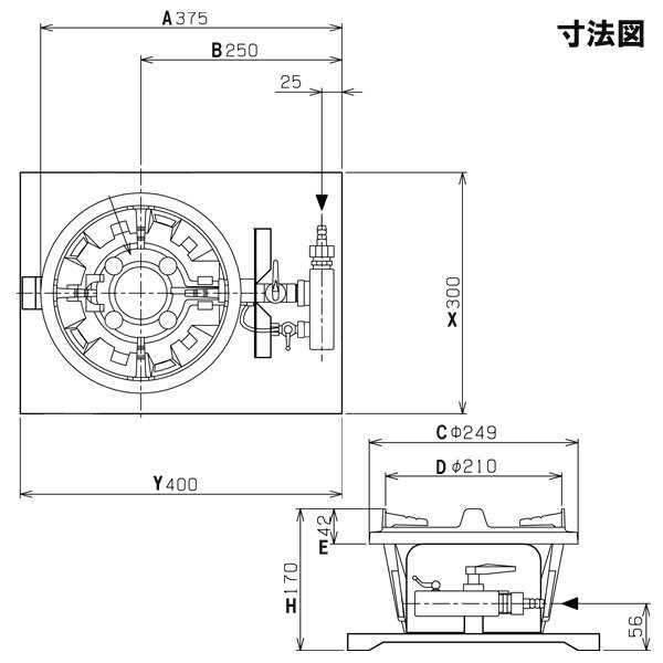 搬入設置も承りますのでお気軽にメールまたは、055-920-8008へお電話下さい。 メーカー希望小売価格はメーカーカタログに基づいて掲載しています。 仕 様 【メーカー】マルゼン 【型 番】MG-4B 【外形寸法】A:375、B:250、C:249、D:210、E:42、H:170(mm) ※詳しくは2枚目の画像の寸法図をご確認ください。 【ガス消費量】都市ガス:5.23kW(4,500kcal/h) LPガス:5.23kW(0.38kg/h) 【ガス接続口径】都市ガス:13mm(ゴム管口) LPガス:9.5mm(ゴム管口) 【備 考】Φ280mm以下の鍋をご使用ください。 【送料について】沖縄・北海道・離島等に商品を配達希望の御客様は、送料について必ず当社に御問い合わせ下さい。 御問い合わせ先はメールあるいはお電話:本社(055-920-8008) にて承っております。※ガス接続の必要な場合は、最寄のガス専門業者へご依頼ください。