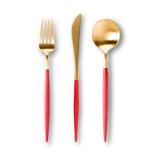 【レビューでクーポン&プレゼント】Cutipol GOA(クチポール ゴア)レッド×ゴールド ディナー3本セット【正規品】【メール便可 2セットまで】 ( カトラリー 赤 オシャレ お洒落 かわいい ギフト 結婚祝い プレゼント 贈り物)