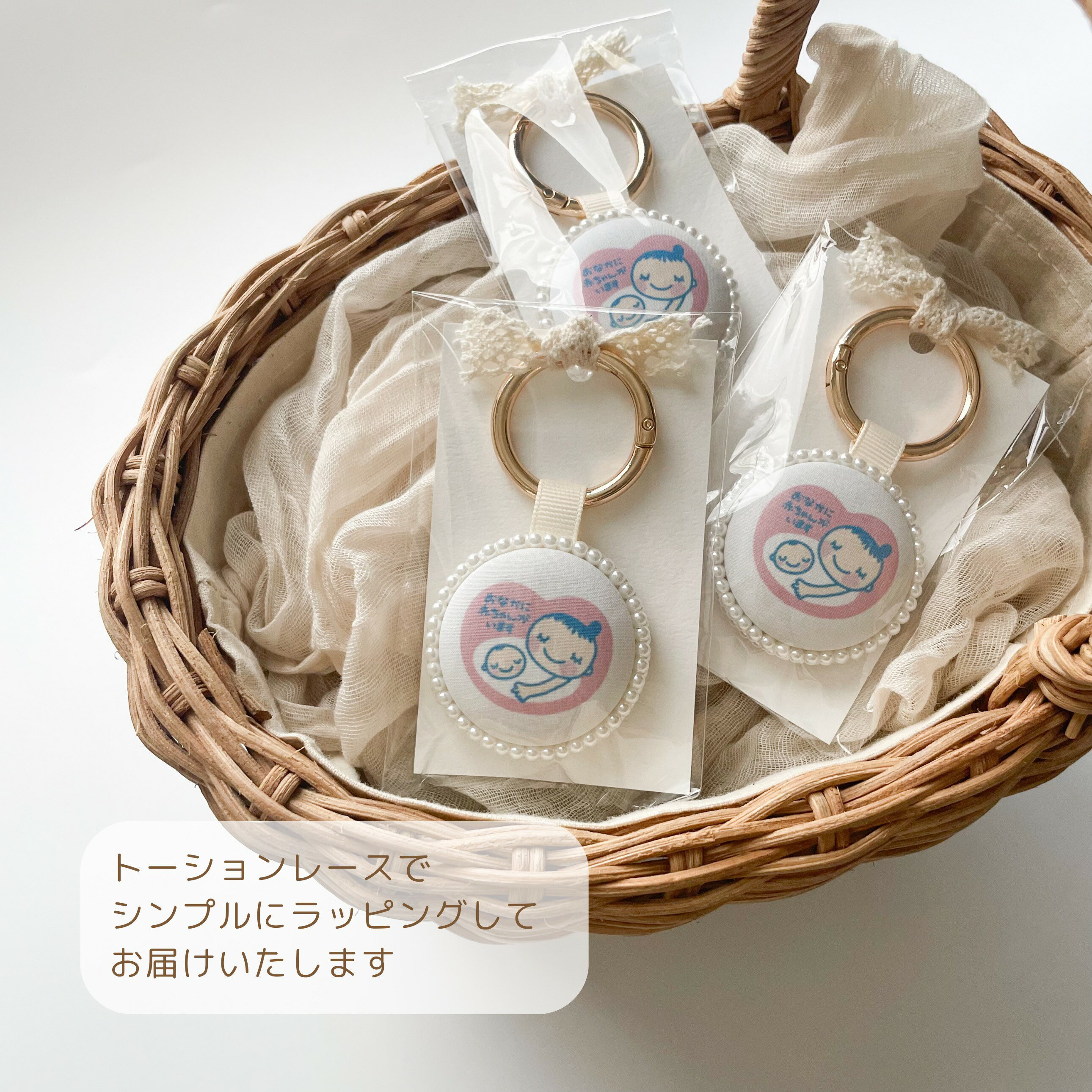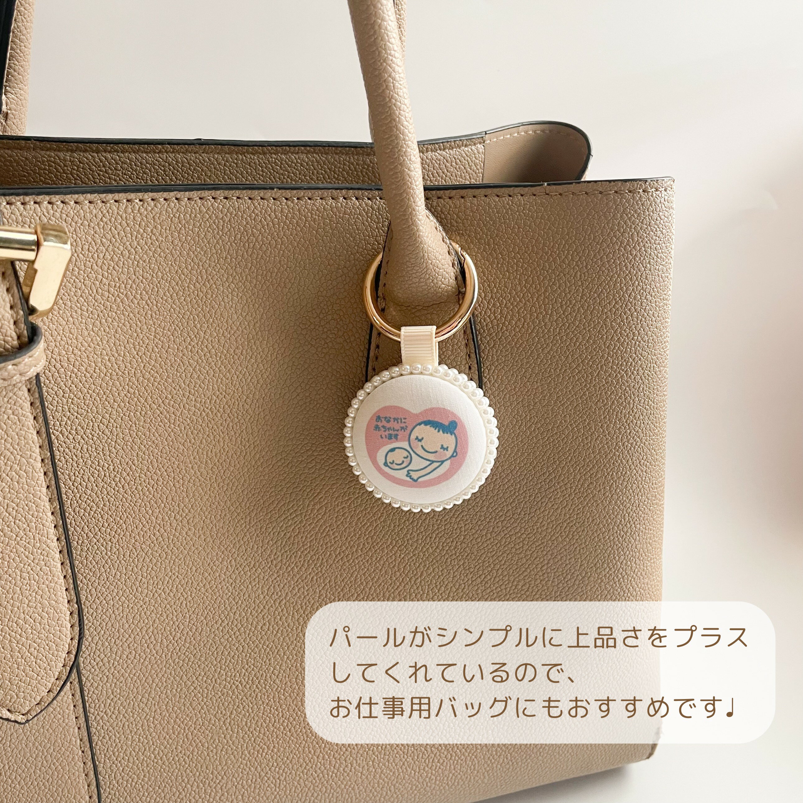 【chouchou】 マタニティマーク キーホルダー パール ハンドメイド 完成品 ゴールド お腹に赤ちゃんがいます 妊娠祝い 妊婦 プレゼント 韓国生地 シンプル 両面 可愛い かわいい お洒落 おしゃれ お守り 安産祈願 チャーム カワイイ
