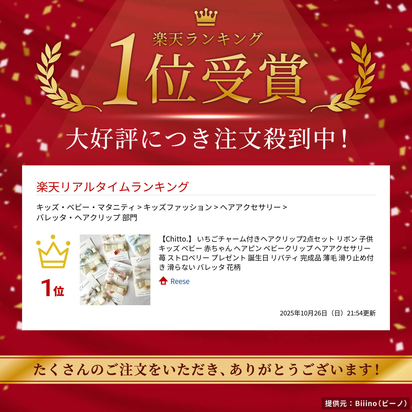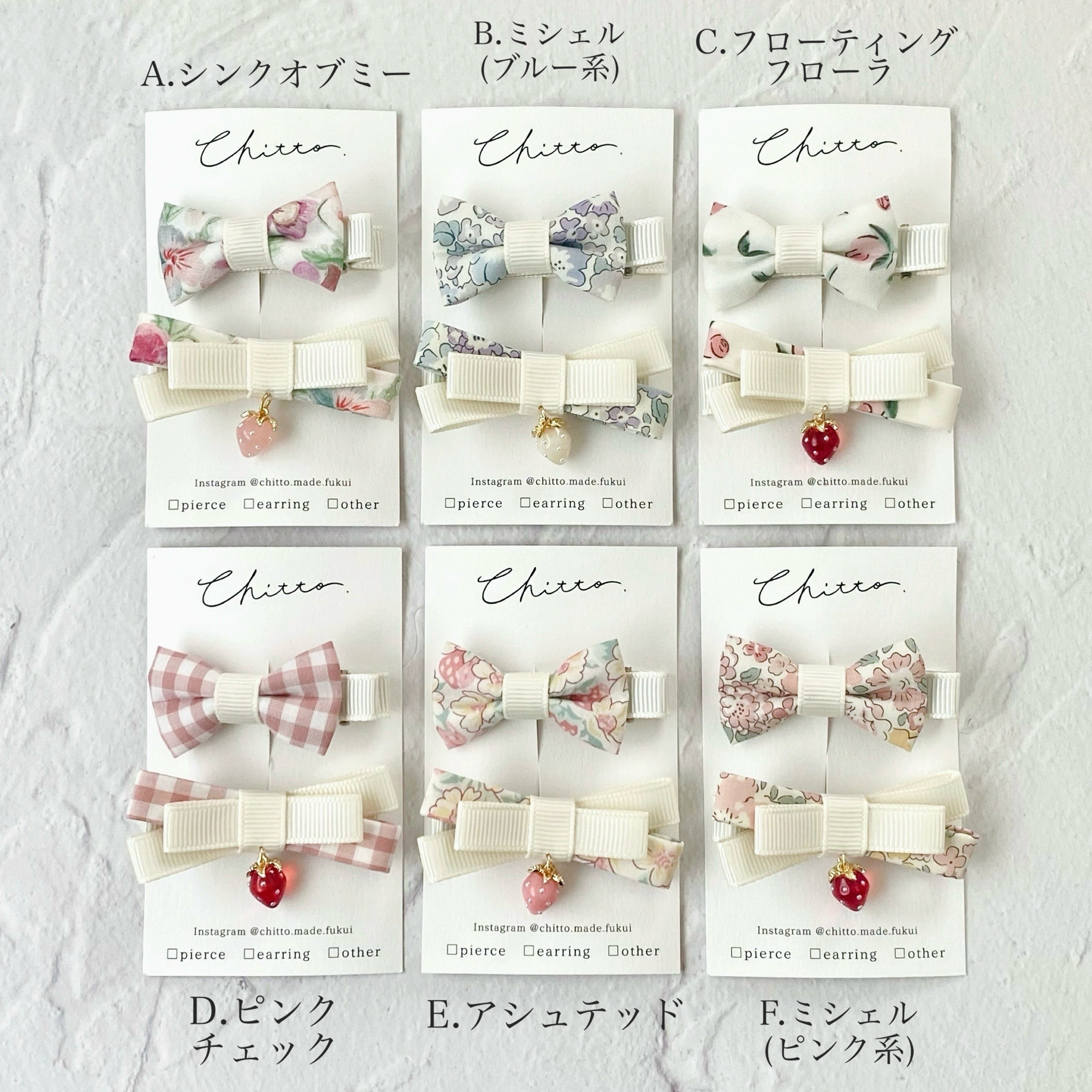 クーポン有り【Chitto.】 いちごチャーム付きヘアクリップ2点セット リボン 子供 キッズ ベビー 赤ちゃん ヘアピン ベビークリップ ヘアアクセサリー 苺 ストロベリー プレゼント 誕生日 リバティ 完成品 薄毛 滑り止め付き 滑らない バレッタ 花柄