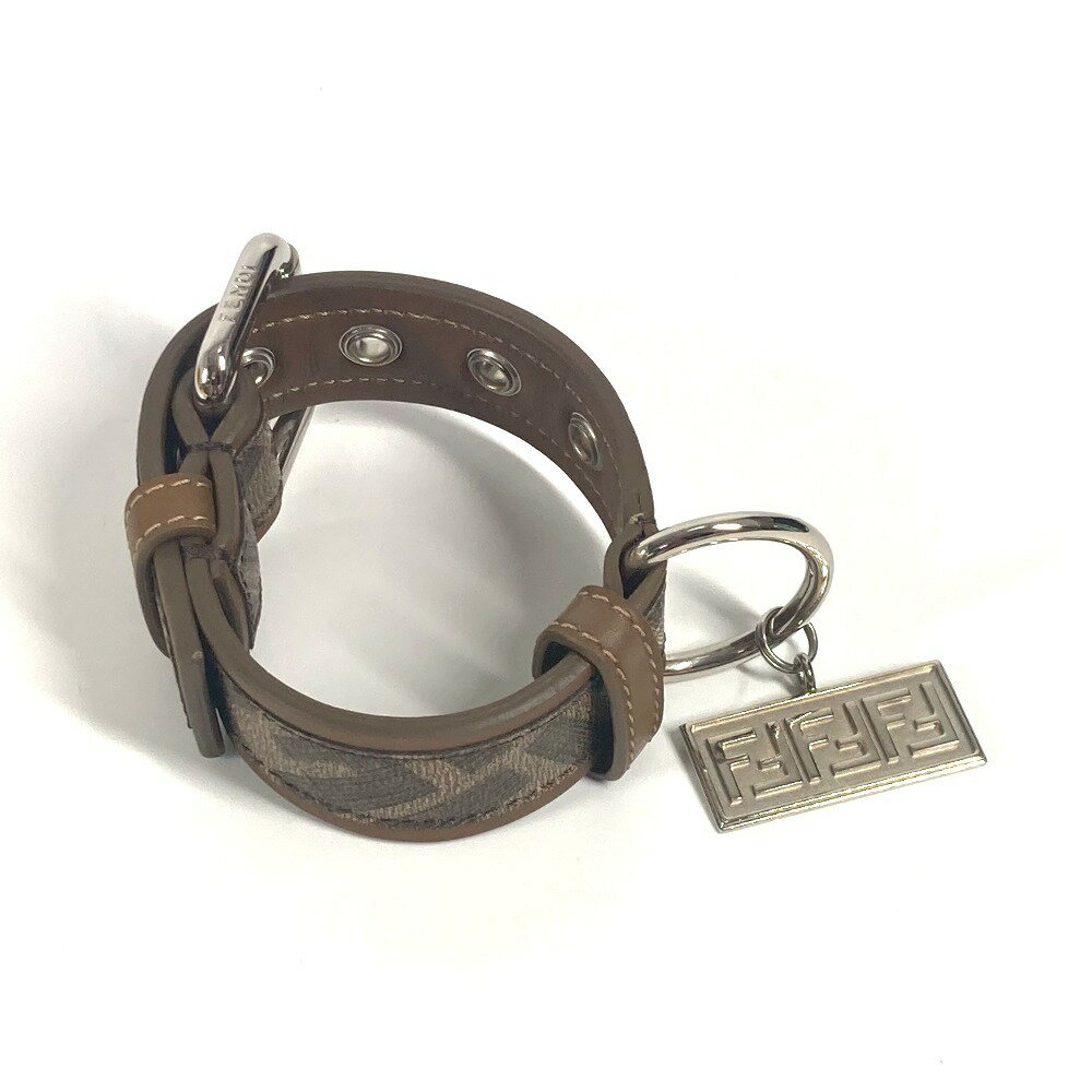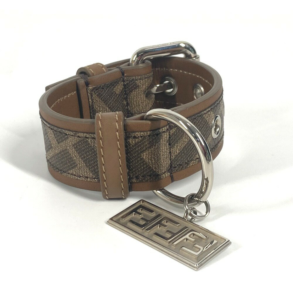 FENDI フェンディ 8AC016 ズッカ ドッグカラー ペット わんちゃん 犬 猫 キャット ペットカラー 首輪 レザー ユニセックス ブラウン 【中古】