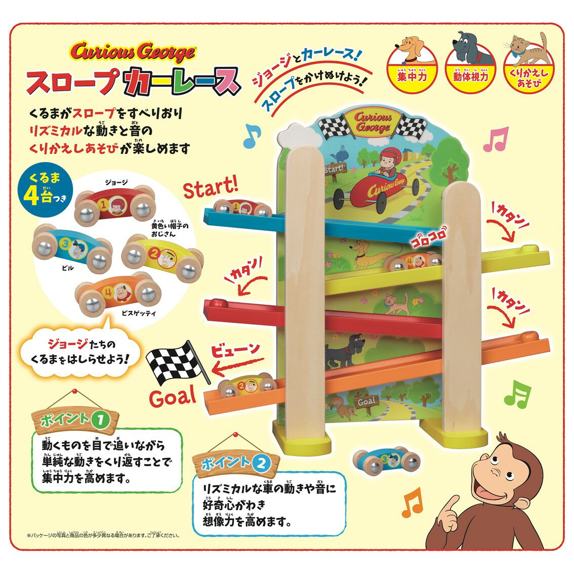 おさるのジョージ 木製 スロープカーレース 木のおもちゃ ベビーおもちゃ 室内遊具 知育玩具 室内遊具プレゼント【1歳6か月〜】