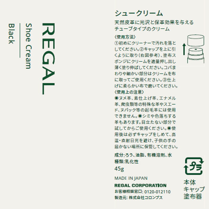 【公式】REGAL TY14 リーガル シュークリーム チューブ 栄養と光沢を与える シューケア | 革靴 クリーム シューズクリーム つや出し ツヤ 皮 手入れ 本革 シューズ くつ 革 靴磨き 靴クリーム レザークリーム レザー ドレスシューズ ツヤ出し 靴ケア 靴ケア用品