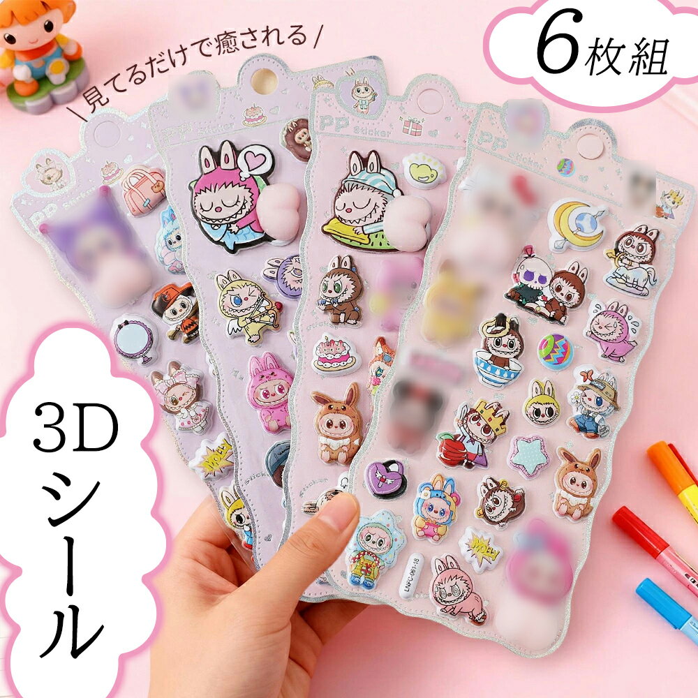 【6枚セット】 シール 供用アニメ3D立体 エンボス シール クリスタル シール 手帳DIY装飾シール ステッカー コップ 冷蔵庫 パソコン 可愛いシール スマホケース飾り 6種類 立体シール 装飾用 DIY用 3Dシール 手帳 貼り付け ステッカー アルバム