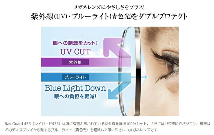 HOYA製レンズ専用オプション HOYA レイガード435【Ray Guard】伊達メガネ 1.60 1.67レンズ対応 UV(紫外線)カット ブルーライト(青色光)ダブルプロテクト