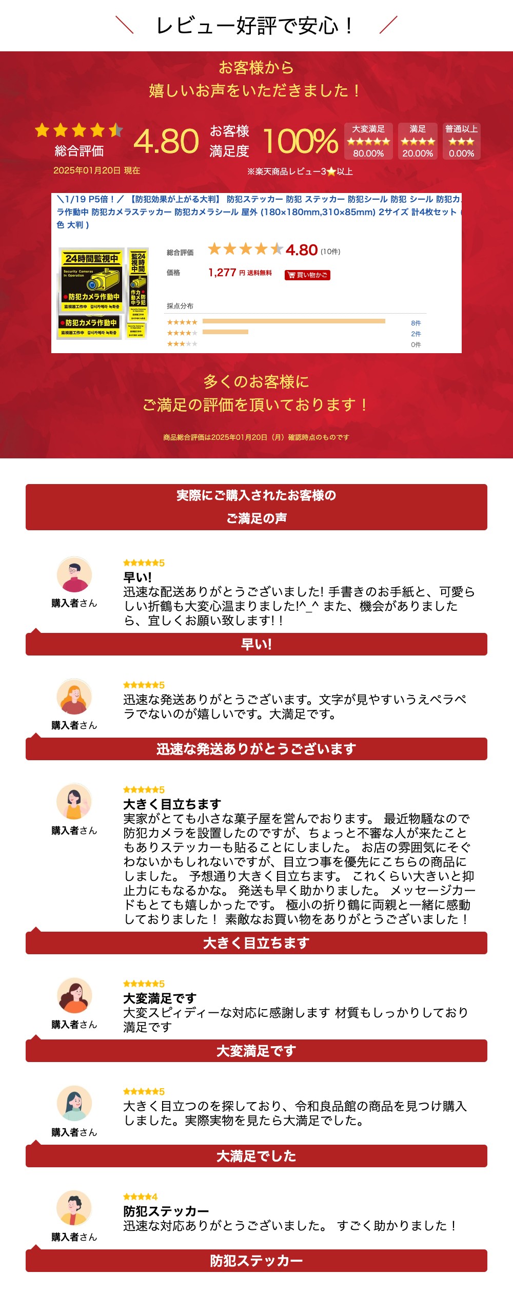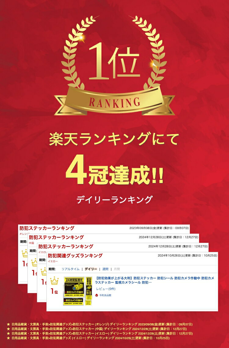 【防犯効果が上がる大判】 防犯ステッカー 防犯 ステッカー 防犯シール 防犯 シール 防犯カメラ作動中 防犯カメラステッカー 防犯カメラシール 屋外 (180×180mm,310×85mm) 2サイズ 計4枚セット ( 黄色 大判 ) 【色の専門家とプロデザイナー】プロデュース 耐光/耐水/耐候 5