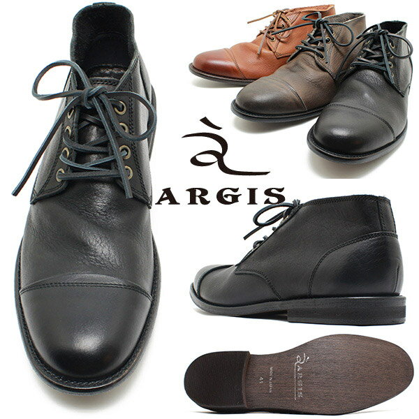 ARGIS アルジス 12103 上質レザー・チャッカブーツ ブラック メンズ レザー ニッポンメイド ストレートチップ 本革 日本製
