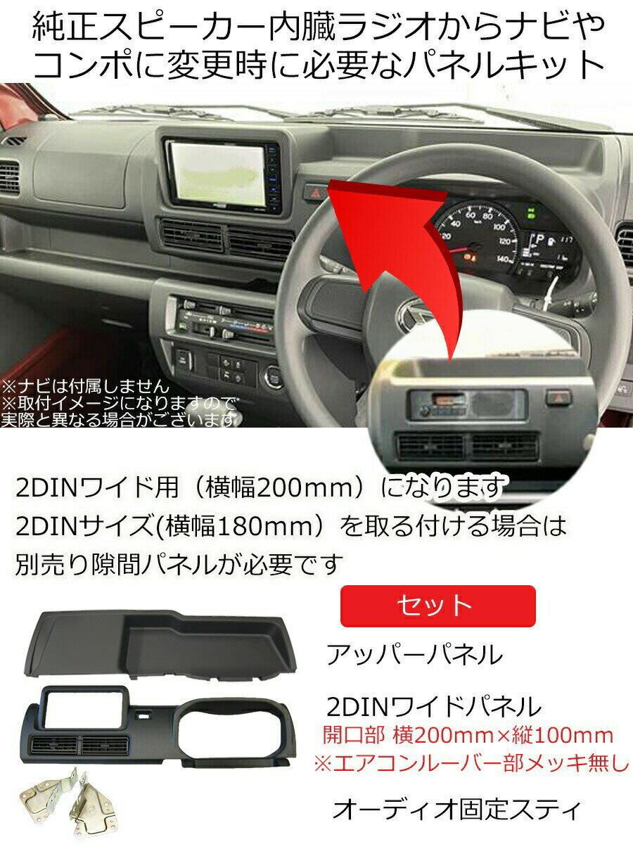 ■エアコンルーバー部メッキ無しタイプです ■2DINワイドナビ取付パネル (パネル開口部 横200mm×縦100mmタイプ) ■純正スピーカー内臓ラジオから2DINワイドナビに変更時に使用するパネルです ■パネル部の破損・キズ等の時も交換用として使用できます ■令和3年12月~現在 モデルチェンジ後 ダイハツ ハイゼットトラック (ジャンボ含む) 型式 S500P / S510P 純正スピーカー内臓ラジオ付車又は1DINサイズ車 ※2022年12月時点での適合確認になります ※型式は車検証でご確認ください