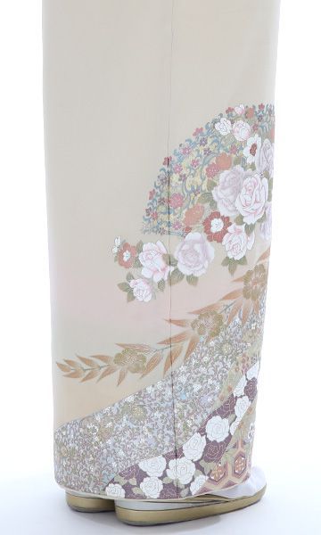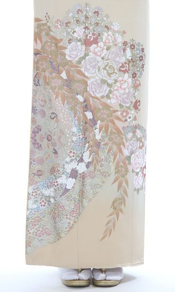 桂由美らしい淡く優美な世界を豪華な薔薇で表現。長年愛されているウェディングドレスのデザインで知られる桂由美ですが、着物のデザインにおいても、和と洋を融合した独自の美しい世界を表現し続けています。こちらのお着物の中心的存在とも言える「薔薇」は日本古来のお花ではありませんが、日本らしい構図配置と刺繍・箔を用いて、和と洋を結んだ淡く優美な世界を作り上げています。「薔薇」は西洋では古くから愛情の象徴として大切にされてきた花です。花言葉も「愛する人」の意味を持ち、晴れの席に着用するにはぴったりの幸せな気持ちを表現することができる1着です。着物の正面から裾に向かって柄が降りてくるようなデザインとなっていますが、日本らしいお着物のデザインにもよく見られる、縦を強調したデザインは全体をすらっと見せてくれるので着上がりもエレガントな雰囲気になります。そして何よりも注目いただきたいのは、着物全体にあしらわれる豪華絢爛な箔と刺繍!金箔と銀箔は文様に輝きをプラスし、金糸を使った刺繍は立体感を与えることで、優美な世界の中に気品を感じさせるてくれます。商品詳細商品番号miit_51商品名桂由美 花の中で素材表地:正絹100%裏地:比翼仕立合成繊維サイズ裄68cm・身丈162cm・袖丈49cm サイズ表は*こちらをクリック*してください。対応身長153cmから162cm位 / 洋服サイズ 7〜13号位まで家紋五つ紋:桔梗の紋コーディネート帯柄、帯揚、帯〆、伊達衿、半衿、草履、バックは当店プロスタッフがお着物にあったものをコーディネートさせて頂きます。 ご要望などのあるお客様は備考欄に具体的にご記入ください。注意事項商品の色目につきましては、お客様のご覧になられますパソコン機器及びモニタなどの違いにより実際の商品素材の色と相違する場合が御座います。予めご了承下さい。注意事項2帯に関しましては、商品の出荷状況などにより同じ物をご用意させて頂くお約束ができません。同じような帯のイメージでコーディネートさせて頂きますので、ご了承の程、よろしくお願い致します。レンタル前にご予約状況と対応サイズを必ずご確認ください!※ご利用日が○であれば前後日が×だとしても借りることができます。