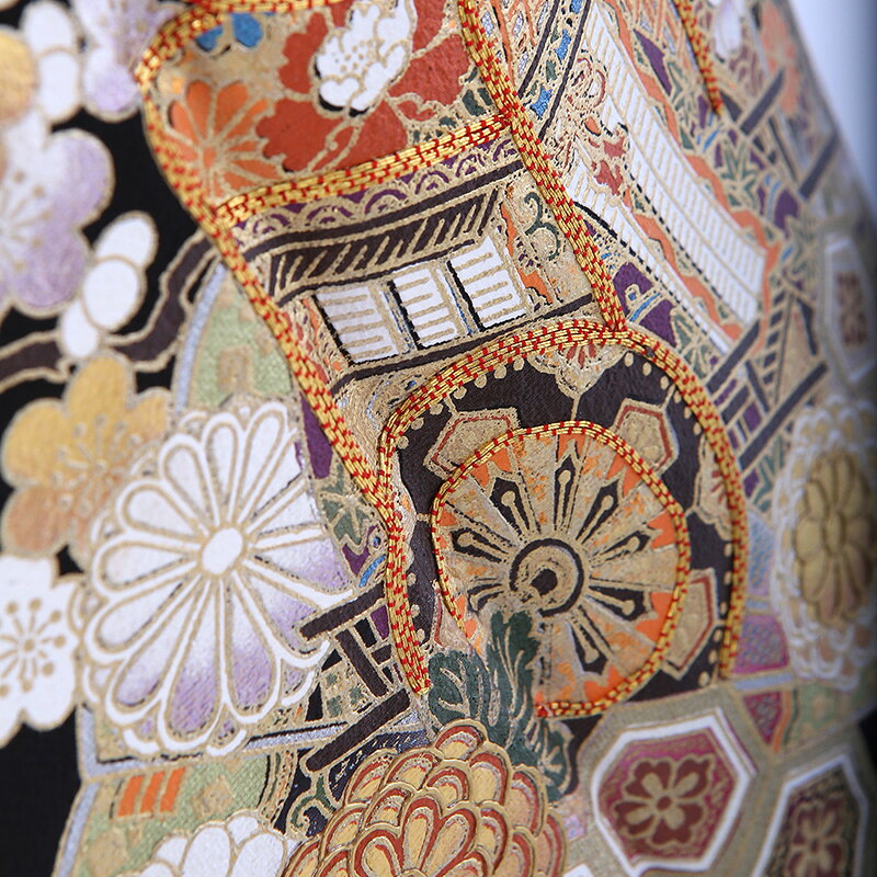 華やかな御所に鶴が飛ぶ。美しい景色に目を奪われます。伝統的な御所の様子を煌びやかな文様で表現したこちらのお着物。大人気の桂由美ブランドが手がける、モダンな華やかさと日本古来の美しさを表現する1着です。御所の庭園には美しい花々が咲き、貴族が移動する際に乗る御所車が梅の木の下を走っています。その横には池の穏やかな水面が見え、その上を長寿を象徴する鶴が羽を広げて優雅に飛んでいます。そんな美しい景色が華やかに描かれ、これから新しい人生をスタートする新郎新婦へのお祝いの気持ちがこもっています。御所の景色の中にたくさんのお祝いや幸せの意味のこもった柄が描かれているのはお気づきでしょうか。鶴の近くに見えるのは、円をつなぎ合わせた「永遠」を意味する七宝柄、末広がりの「扇」。宝物と呼ばれる願いを叶える「打出の小槌」、学問を表す「巻物」、身を守る「隠れ蓑」、長寿を表す「丁子」、富の象徴「分銅」は全体に散りばめられています。豪華絢爛な金彩が目を引くこちらのお着物が幸せな気持ちを表現してくれますよ!商品詳細商品番号mito_463商品名桂由美 御所物語素材表地:正絹100% 袷と単衣有り単衣の詳しい内容は*こちらをクリック*してください。 裏地:比翼仕立合成繊維サイズ各サイズ有り サイズの詳細は*こちらをクリック*してください。対応身長145cmから175cm位 / 洋服サイズ 7〜13号位まで(※幅広は15~19号位まで)コーディネート留袖(着物)以外の帯や小物などはお選び頂いた着物に合わせて当店スタッフがコーディネートさせていただきます。 ご要望などのあるお客様は備考欄に具体的にご記入ください。注意事項商品の色目につきましては、お客様のご覧になられますパソコン機器及びモニタなどの違いにより実際の商品素材の色と相違する場合が御座います。予めご了承下さい。注意事項2帯に関しましては、商品の出荷状況などにより同じ物をご用意させて頂くお約束ができません。同じような帯のイメージでコーディネートさせて頂きますので、ご了承の程、よろしくお願い致します。同柄のお着物がサイズ毎・夏用など複数点ございます。※ご利用日が○であれば前後日が×だとしても借りることができます。