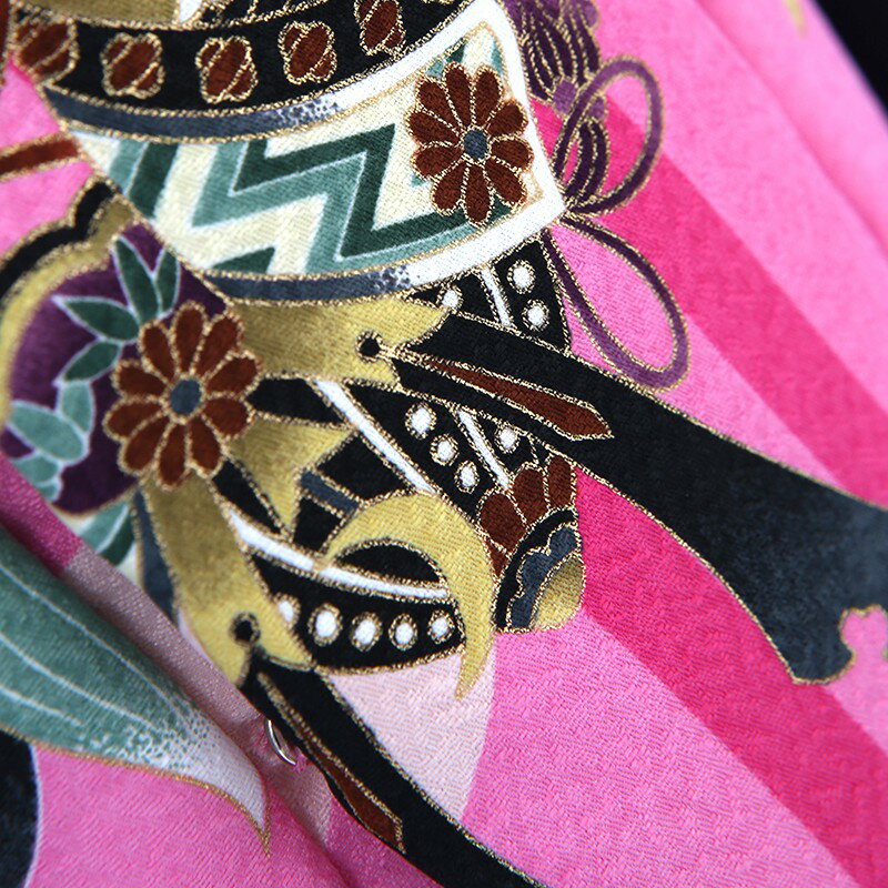 健やかで、薔薇色のような人生を。華やかで気品溢れる一着。紺色は着物の定番色ですが、顔映りがいいので、写真撮影を行う場面が多いフォーマルなシーンにおすすめの色味です。そしてこの晴れ着の最大の特徴は、一際輝く鮮やかなピンク色の被布。濃いピンクは「薔薇色」と呼ばれ、鮮やかな紅色のことで「薔薇色の人生、未来」のいう意味が込められた、華やかで前向きな色、また薄いピンクは「中紅花」という由緒ある伝統色を使用しています。この2色で「縞柄」が描かれています。直線は厄除けの意味があるので、縁起のよい古くから人々に親しまれた文様です。そして他にも晴れ着に相応しい吉祥文様が全体に描かれていますが、力強い「兜」の存在感が大きいので、可愛らしすぎず男の子の晴れ着らしさが出て、格好よく仕上がっています。兜は戦いにおいて、大切な頭を守る道具として受け継がれてきました。身の安全を守る為、災いから逃れる為のお守りとしての意味があります。我が子の健康を祈り、薔薇色のような素敵な人生を送ってほしいという願いがこもった、色鮮やかな晴れ着になります。古典柄ですが、鮮やかなピンクが非常に美しく気品溢れます。人とは違った華やかで個性的な装いがしたい方におすすめです。レンタル前にご予約状況と対応サイズを必ずご確認ください!※ご利用日が○であれば前後日が×だとしても借りることができます。商品詳細商品番号mbb_0006 / 1歳ベビー着物 男の子用対応身長75-85cm位素材高級化繊コーディネート画像と同じ物でコーディネートさせて頂きます。付属品画像着物一式・足袋(11-12cm)注意事項※商品の色目につきましては、お客様のご覧になられますパソコン機器及びモニタなどの違いにより実際の商品素材の色と相違する場合が御座います。予めご了承下さい。※セパレートタイプ(2つに分かれるタイプ)の着物になっているので、着付けは簡単に調整できます。