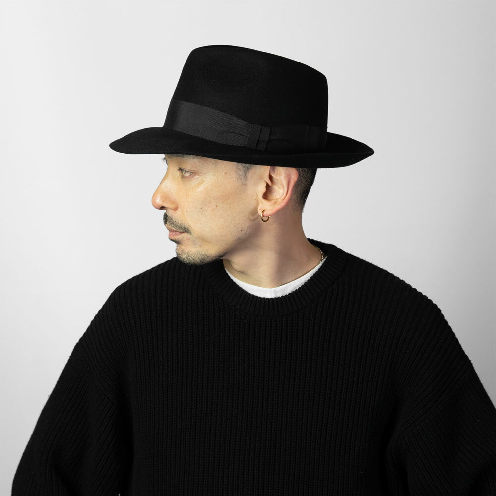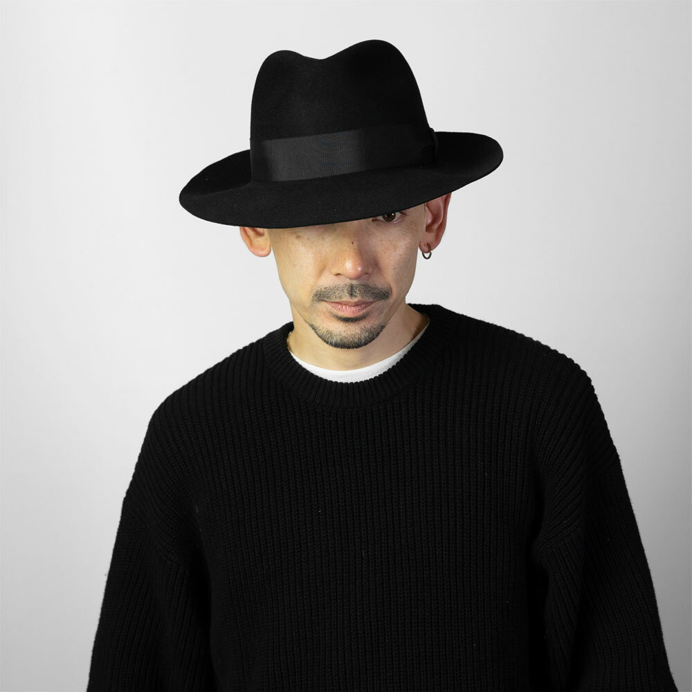 【日本製 EDHAT ブラック 黒 つば広 中折れハット】ウール フェルト ハット メンズ 春秋冬 帽子 エドハット センタークリース つば広ハット L XL 大きいサイズ 小さいサイズ サイズ調節可 ギフト シンプル 大人 カジュアル おしゃれ 紳士帽子 中折れ帽 結婚式 衣装