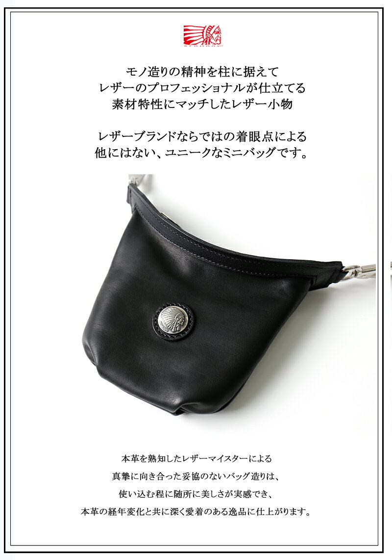 メーカー希望小売価格はメーカーカタログに基づいて掲載しています 小物収納に重宝しちゃうミニバッグ・プラスで いつもよりも機能的にスタイルアップ ジップスライド開閉の横長なゴンドラ型形状が特徴な LONGSHIP(ショルダーバッグ)シリーズより、 使い方はユーザーそれぞれとなる、ユニークなミニバッグが登場。 本体両端にある、着脱の容易なナス管を使い、 様々な箇所に装着して、プラスαな小物収納に役立ちます。 収納ポケットが足りなかった時や、 収納物の膨らみに煩わしさを感じる形状のものにはうってつけ。 パンツのベルトループに装着してサブポケット代わりにしたり、 鞄に装着してアウトポケットとして活用するなど、 スタイルアクセントとしてもユニークに映える、気分のアガる小ワザです。 インナーには鍵類の紛失防止に頼もしいレザーロープ(リング付)が取り付けられ、 さらにカードポケットも備えており、 外出時に必須な手回り品の取りまとめに、うってつけなミニバッグです。 グローブレザー素材の本体はオイルがしっかりと含まれ柔軟性が高く、 収納物や取り付け位置を限定せずに変幻自在に馴染みやすく、 使う人のスタイルに合わせて様々なニーズに応えます。 またジップレール部分の堅牢でハリのあるサドルレザーの採用は、 ジップ開閉の安定的なスライドに寄与し、 かつ2種の異なるレザーの「コンビ使い」が楽しめます。 こちらは本体正面にブランドの象徴となる ネイティブアメリカンをデザインした縁なしのZコンチョを付けたモデル。 もちろん製作はレッドムーンブランド製作工房「Village」による、 熟練の職人が自信を持って手がける Made in Japanアイテムです。 レザーブランドらしく素材の特性と魅力を熟知した、 「他にはない」REDMOONならではの気分の高まるユニークなレザーポーチです。小物収納に重宝しちゃうミニバッグ・プラスで いつもよりも機能的にスタイルアップ ジップスライド開閉の横長なゴンドラ型形状が特徴な LONGSHIP(ショルダーバッグ)シリーズより、 使い方はユーザーそれぞれとなる、ユニークなミニバッグが登場。 本体両端にある、着脱の容易なナス管を使い、 様々な箇所に装着して、プラスαな小物収納に役立ちます。 収納ポケットが足りなかった時や、 収納物の膨らみに煩わしさを感じる形状のものにはうってつけ。 パンツのベルトループに装着してサブポケット代わりにしたり、 鞄に装着してアウトポケットとして活用するなど、 スタイルアクセントとしてもユニークに映える、気分のアガる小ワザです。 インナーには鍵類の紛失防止に頼もしいレザーロープ(リング付)が取り付けられ、 さらにカードポケットも備えており、 外出時に必須な手回り品の取りまとめに、うってつけなミニバッグです。 グローブレザー素材の本体はオイルがしっかりと含まれ柔軟性が高く、 収納物や取り付け位置を限定せずに変幻自在に馴染みやすく、 使う人のスタイルに合わせて様々なニーズに応えます。 またジップレール部分の堅牢でハリのあるサドルレザーの採用は、 ジップ開閉の安定的なスライドに寄与し、 かつ2種の異なるレザーの「コンビ使い」が楽しめます。 こちらは本体正面にブランドの象徴となる ネイティブアメリカンをデザインした縁なしのZコンチョを付けたモデル。 もちろん製作はレッドムーンブランド製作工房「Village」による、 熟練の職人が自信を持って手がける Made in Japanアイテムです。 レザーブランドらしく素材の特性と魅力を熟知した、 「他にはない」REDMOONならではの気分の高まるユニークなレザーポーチです。 レザーブランドの雄”REDMOONらしく、他にはない、オンリーワンなモノ作り。 自分だけのスタイルを確立する他に無いアイテムとして、 使い込みながら経年変化を堪能し、 歴史を刻み込んだ自分だけの逸品に育て上げるよう永く愛用ください。 ▼こちらもオススメ♪▼