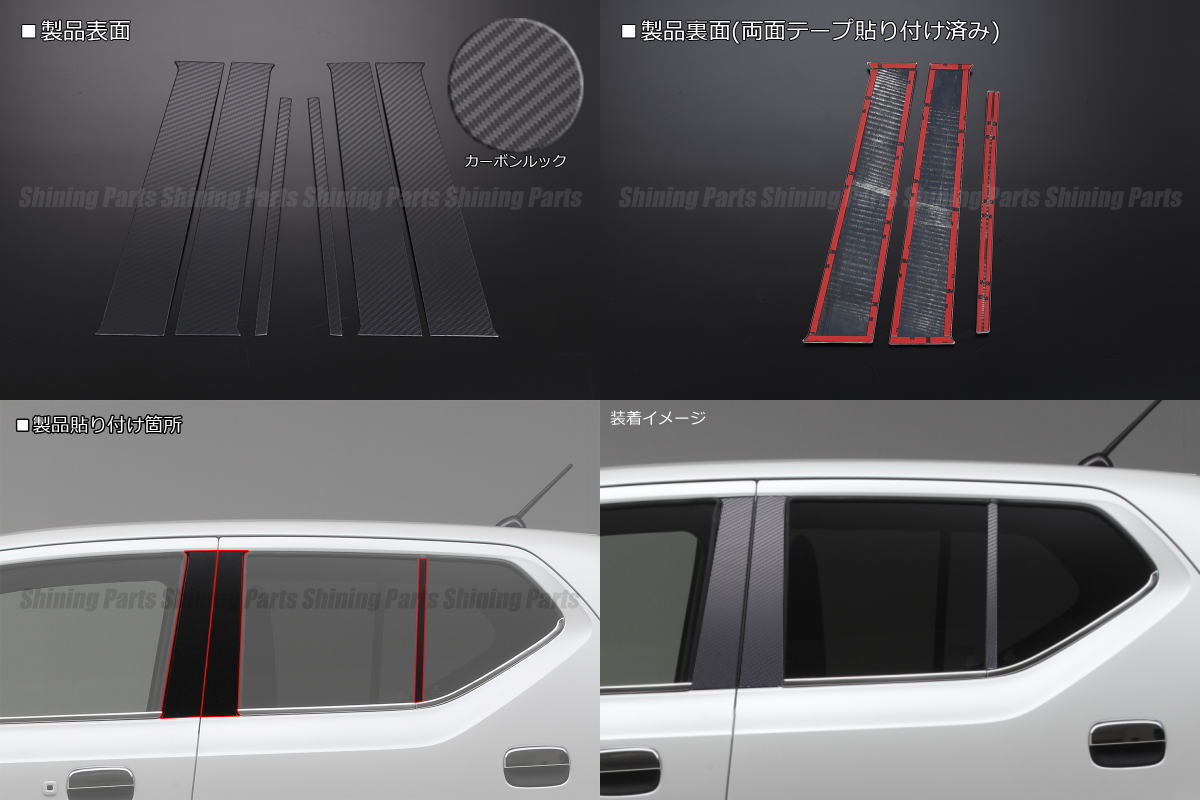 【REIZ(ライツ)】「立体カーボン調」HA36Sアルトワークス/アルトターボRS他 ピラーガーニッシュ 左右セット6ピース構成 //キャロル/ALTO/WORKS/TURBO/CAROL/HB36S/カスタムパーツ/
