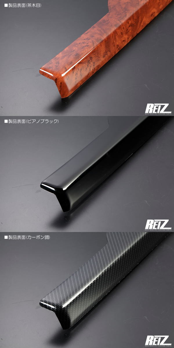 適応車種 -HONDA- N-VAN JJ1 JJ2 ※e:を除くオールモデル ※N-VAN e:は形状が異なるため装着不可 商品内容 -高品質PC素材の採用- 柔軟性のあるPC素材を採用。 湾曲面へのフィット感も考慮されております。 -ドア周りをドレスアップ- 乗り降りの際必ず目に付くところですので、少ないピースながら装着後の満足感も大きいアイテムです。 -両面テープ装着済み- 商品裏には両面テープを装着済みです。 貼り付け面を脱脂していただき張り付けるだけの簡易装着。 手軽に高級感を演出できます。 ■注意事項 外気温が10度を下回りますと両面テープの接着力が低下します。 外気温が低くなるシーズンは、テープ面と接着面を温めてからお取り付けください。 必用に応じて両面テープを貼り増す、ドライヤーで温める等でご対応ください。 装着後は保証対象外となります。 必ず貼り付け前に仮合わせを行い、貼り付け面の洗浄・脱脂をお願いします。 ■セット内容 商品本体:2ピース(両面テープ施工済み) ■素材 PC(ポリカーボネート) ■カラーバリエーション・茶木目調 ・ピアノブラック ・カーボン調 ・マホガニー黒木目 ・クラッシュカーボン調 保障期間 発送より7日間(初期不良のみ) ※装着後は保証対象外となります。 検索ワード: REIZ ライツ ライズ レイツ レイズ カスタム パーツ ドレスアップ ドレスアップパーツカスタムパーツ アフターパーツ 補修パーツ 修理パーツ インテリアパネル 内装 アクセサリー インテリア パネル インパネ ガーニッシュ ホンダ HONDA パワーウインドウ パワーウインドー パワーウィンドウ パワーウィンドー パワーウィンドゥ 肘置き ひじ置き ヒジ置き アームレスト サイドアームレスト ドアグリップ アシストグリップ インナーハンドル ベゼル リング インサイドハンドル インナードアハンドル インサイドドアハンドル ドアノブ JJ1 JJ2 N-VAN NVAN Nバン +STYLE FUN COOL プラススタイルファン プラススタイルクール プラススタイル ファン クール 5BD-JJ1 5BD-JJ2 HBD-JJ1 HBD-JJ2