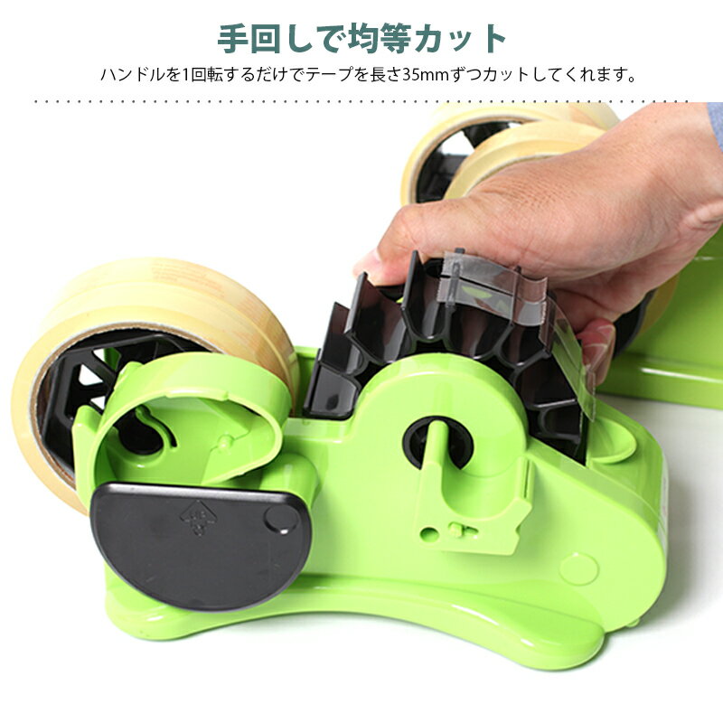 テープカッター セロハンテープ 台 セロテープ カッター テープディスペンサー 35mm裁断 手回し 梱包 工作 安全 Z-KAN001002