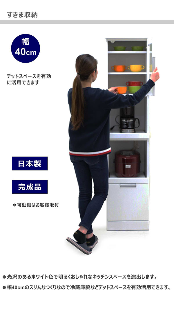 【楽天イーグルス感謝祭全品5倍】レンジ台 40cm 40センチ キッチン 隙間収納 食器棚 キッチンボード キッチンラック レンジボード スリム 薄型 扉付き 白 ホワイト キッチン収納棚 引き出し すきま収納 すき間収納 完成品 一人暮らし おしゃれ 大容量 省スペース 日本製