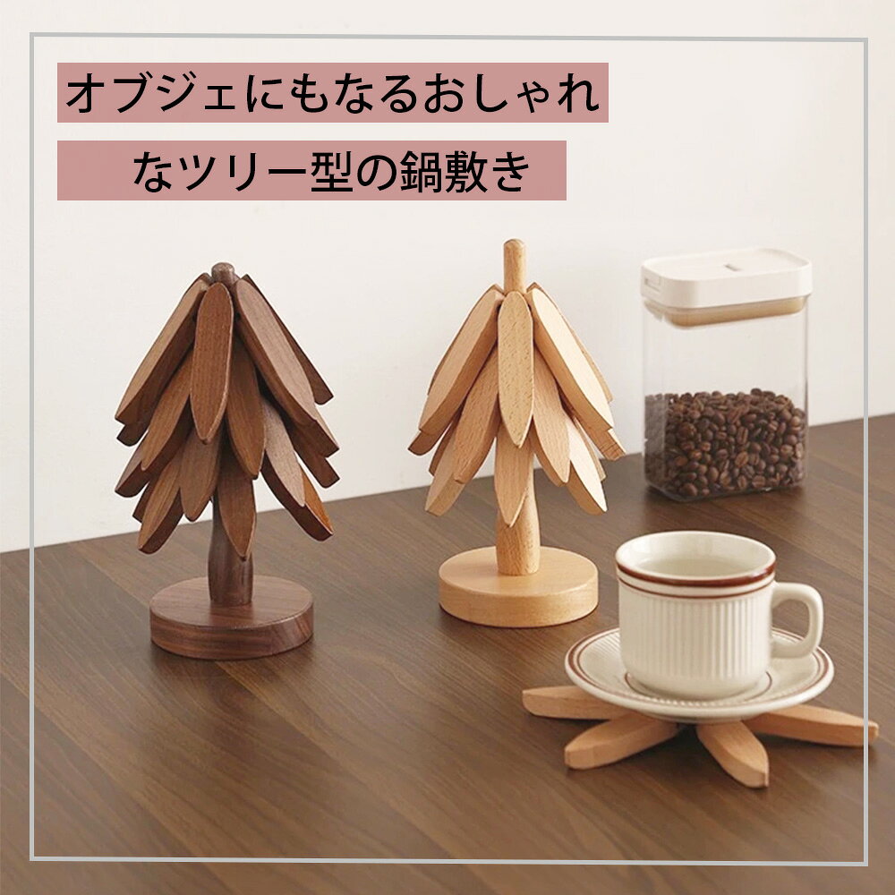 鍋敷き 木製 ツリー型 3枚入 ミニツリー 北欧 鍋 なべしき 耐熱 木製 コースター ブナの木 キッチン雑貨 ポットマット 食器 敷物 茶托 天然木 カフェ アウトドア 置物 オブジェ おしゃれ 飾り キャンプ キッチン雑貨 クリスマス プレゼント