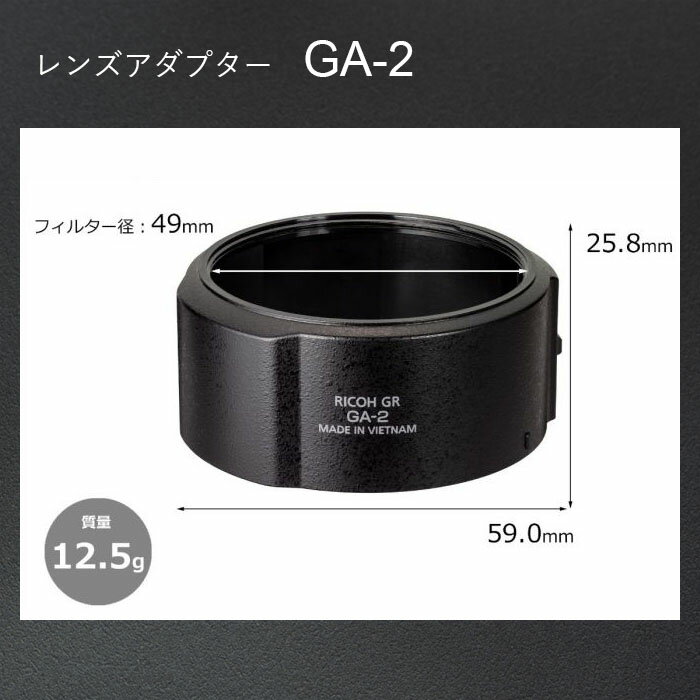 RICOH レンズアダプター GA-2 【対応機種: GR IIIx , テレコンバージョンレンズ GT-2装着時に使用するアダプター / 49mmフィルターを装着可能 / GT-2を自動検知・クロップ、手ぶれ補正を最適化】GA2 GR3x 純正品