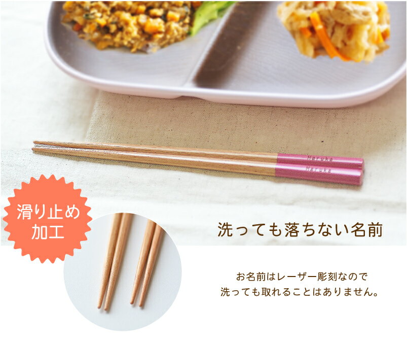 ------------------------------------------- 名前入り 子供箸 六角形18cm ------------------------------------------- 手触りがしっとりした握りやすいお箸 お子様の年齢の手に合わせた自然素材のお箸は 持ちやすく、食べやすい形です。 お名前を入れてちょっぴりだけ特別感を出せば 字を読めるようになった時、うれしい気持ちになること間違いなし。 贈り物としてもご自宅用として成長に合わせてそろえるのもいいですね。 手のサイズにあったぴったりお箸を見つけよう! ■お箸のサイズ:全長約14cm、16.5、18、19cmの4種類 ・14センチ…年齢約2~4才向け ・16.5センチ…年齢約4~6才向け ・18センチ…年齢約7~9才向け ・19センチ…年齢約10~12才向け ☆【お箸の長さ・選び方】☆ 親指と人差し指を直角に広げ、その両方の指先を結んだ長さの1.5倍の長さが ちょうど良い箸の長さと言われます ●季節のイベントにご利用ください。 プレゼント / Present / ギフト / プチギフト / Gift / 贈り物 / 贈りもの /贈呈品 / 贈答品 / 贈答 / ラッピング / ギフト セット / 誕生日 / 誕生日プレゼント / Happy Birthday / ハッピーバースディ / Anniversary / アニバーサリー / 卒園 / 卒業 / 卒業祝い / 入学祝い / 入園 / 入園祝い / 新生活 / 新生活応援 / 引っ越し / 開店祝い / 記念日 / 記念品 / 送別 / 送別品 / 祝い / こどもの日 / 子供の日 / 子ども会 / 入学準備 / 通学準備 / 登校準備 / 通園 / 通学 / 発表会 / コンクール / 大会 / 授賞式 / 敬老の日 / 敬老会 / 父の日 / 母の日 / 部活 / 習い事 / 六年生を送る会 / 一年生を迎える会 / 部活引退 / 引退試合 / 先輩引退 / クラブ引退 / 卒団 / 入団 / 入会 / 入部 / 歓迎会 / 送別会 / ハロウィン / クリスマス / Xmas / Chrismas / バレンタイン / バレンタインデー / バレンタインデイ / Valentine / ホワイトデー /大人かわいいシンプルなデザインの子供箸 持ちやすい六角形のお箸 7歳から9歳くらいのお子様の手にあう18センチのお箸。すべりにくく手にフィットする形状の六角形の面に、消えない文字でお名前入れをいたします。保育園や幼稚園などのお弁当時間にも自分の名前入りなら間違うことがありませんね。ご自宅用としてもかわいい名前を刻印して自分だけのお箸でお食事時間が楽しくなりますように。 ナチュラルな木製のお箸にポイントとなる差し色のカラーがインパクトあり。小さなお子様の手にフィットする六角形だから成長期の大事な時期のお箸の持ち方をサポートしてくれます。木製ならではの手に当たる感触が優しいお箸です。 お色は2色からお選びください。 さりげなくお名前入りが嬉しい 選べるラッピング方法 贈り物なら固定の文字入りのカードを添えて 箸用のケースに入れると持ち運びにも便利 商品について 子供用名入れ六角箸18cm 家庭用食洗機対応【選べる2色】 商品説明 ■サイズ 18cm ■色 ラズベリー/インディゴ ■素 材 木製 ■生産国 日本製 名入れについてのご注意 【彫刻向き】縦横が選べます。※英文字は横向きでお入れします ■文字数:10文字以内 ※お箸の書体は、見本通りとなります。見本以外の書体をご希望の場合は+100円となります。 ご取扱上の注意について ・つけ置き洗いはお控え下さい。 発送について ・ゆうパケット/宅配便 ※数量が多い場合やギフトボックスを選択の場合は、メール便ごご選択でも宅配便での発送となることもございます。 納期:ご注文から約1週間前後でお店より出荷いたします。→→ 商品お届け ※ご注文が混み合う場合や数量が多い場合は発送が遅れる場合がございます。