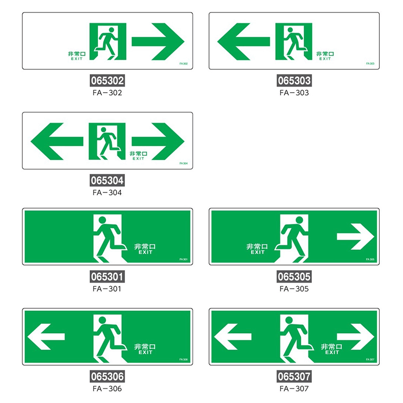 ■サイズ:120×360×1mm ■材質:硬質エンビ ■仕様:ラミネート加工 《種類》 【通路誘導標識】 ●FA-302(065302)「右矢印 背景色:白」 ●FA-303(065303)「左矢印 背景色:白」 ●FA-304(065304)「左右矢印 背景色:白」 【避難口誘導標識】 ●FA-301(065301)「左向き 背景色:緑」 ●FA-305(065305)「右矢印 背景色:緑」 ●FA-306(065306)「左矢印 背景色:緑」 ●FA-307(065307)「左右矢印 背景色:緑」