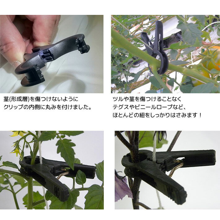 ◆商品詳細大型トマト、パプリカなどに最適! ★植物の茎をやさしく囲み、傷をつけない誘引クリップ★ トマトやキュウリの誘引栽培で、洗たくバサミで茎(形成層)を挟んでいませんか? これは人に例えると首を絞めている状態で、植物にとって良い事ではありません。 アグリベース四万十の【誘引クリップ】は、クリップの内側に丸みを付け形成層を傷付けないように改良しています! 作物に負担をかけないので、成長を阻害することがありません。 ★安価で丈夫、内径も選べる4種類★ 円形クリップは数をたくさん使う現場ではコストが高くなりますが、誘引クリップは安価でご提供! しかも耐用年数が5年程度と長期間お使い頂けます。 内径も 12mm / 15mm / 19mm / 25mm と4種類あるので、様々な作物に対応しております。 使用例: 12mm) キュウリなど 15mm) ピーマン、トマト先端部など 19mm) トマト、ナス、ピーマンなど 25mm) 大型トマト、パプリカなど ※その他、スイカやメロンなどの果菜のツルや茎の誘引にもお使い頂けます。 ▼製品仕様 【内径】 25mm 【色】 黒 【材質】 本体:再生ポリプロピレン、ばね部:鉄製亜鉛メッキ 【耐用年数(目安)】 ハウス内通常使用で4〜5年 【発売元】 株式会社アグリベース四万十 ◆まとめ買いがお得! 【誘引クリップR/内径12mm】●内径12mm×100個●内径12mm×500個●内径12mm×3000個【誘引クリップR/内径15mm】●内径15mm×100個●内径15mm×500個●内径15mm×3000個【誘引クリップR/内径19mm】●内径19mm×100個●内径19mm×500個●内径19mm×2000個【誘引クリップR/内径25mm】●内径25mm×100個●内径25mm×500個●内径25mm×2000個 ワンタッチピンチ 茎の誘引 トマト 茄子 ナス きゅうり スイカ メロン 傷めない ツル 蔓 サポートクリップ 誘引ハサミ●100個 ●500個 ●3000個 ●100個 ●500個 ●3000個 ●100個 ●500個 ●2000個 ●100個 ●500個 ●2000個