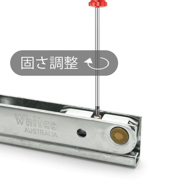 ■カテゴリー : 滑り出し窓用 スライド 金具 ■ブランド : Whitco ( ホイトコ ) ■サイズ(全長)・重量(セット) : およそ 全長 203mm・380g / 254mm・460g / 305mm・540g / 356mm・620g / 407mm・690g ■主素材 : スチール ■付属品 : 木ネジ DIY グッズ 一覧 工業系 インダストリアル グッズ 一覧製品の代名詞となった生粋の老舗建具ブランド、オーストラリアの Whitco (ホイトコ) 滑り出し窓用 スライド 金具 フリクションステー (出窓調整器) の世界的なトップ ブランド あらゆる素材の窓枠に使用可能 ( 取り付けねじは各々ご用意ください ) 数百万世帯に愛される最大手ブランドとしての信頼、クオリティの高さもワールドサイズ 独自の摩擦抵抗設計により、窓を任意の位置で「ピタッ」と止められるので つっかえ棒が不要で片手での開閉操作が可能です。 窓の重量に合わせてスムーズにスライド ( グリースが塗られています ) 出来る調整機構付き 必要に応じてネジを回転させて固さ調整下さい。 幅31mm 厚み12mm は共通、全長 203mm / 254mm / 305mm / 356mm / 407mm 2本1セットでの販売となります。 およそ5cm刻み 大小 様々な窓に対応できる 豊富なサイズ バリエーション 適合表を参考にサイズ選定下さい。