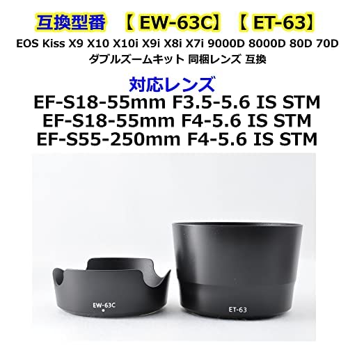 ・ EW-63C ET-63UVフィルタ2枚セット ・・Size: EW-63C ET-63UVフィルタ2枚セット・Canon EOS Kiss X10i X10 X9i X9 X8i X7i ダブルズームレンズキット 用レンズフードEW-63CTE-63とレンズ保護用レンズフィルター58mm2枚 4点セットです。・4点セット内容Canon互換フード EW-63C Canon互換フード ET-63 58mmレンズUVフィルター2枚・対応製品Kiss X10 X9i X9 X8i X7i EOS 9000D 8000D 80D 70D のダブルズームレンズキットに対応しています。・EW-63Cの適応レンズEF-S 18-55mm F3.5-5.6 IS STM、EF-S 18-55mm F4-5.6 IS STM・ET-63の適応レンズEF-S 55-250mm F4-5.6 IS STM4点セット内容Canon互換フード EW-63C Canon互換フード ET-63 58mmレンズUVフィルター2枚 対応製品Kiss X10 X9i X9 X8i X7i EOS 9000D 8000D 80D 70D のダブルズームレンズキットに対応しています。 EW-63Cの適応レンズEF-S 18-55mm F3.5-5.6 IS STM、EF-S 18-55mm F4-5.6 IS STM ET-63の適応レンズEF-S 55-250mm F4-5.6 IS STM