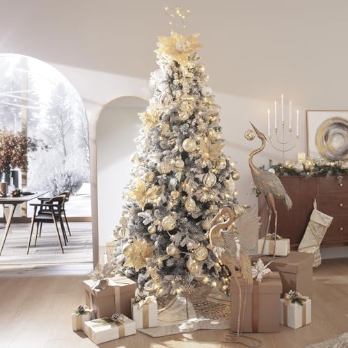 Valery Madelyn クリスマス オーナメント 大きめ 8cm 16個入り ホワイト ゴールド 白金 クリスマス ツリー 飾り 飾り付け