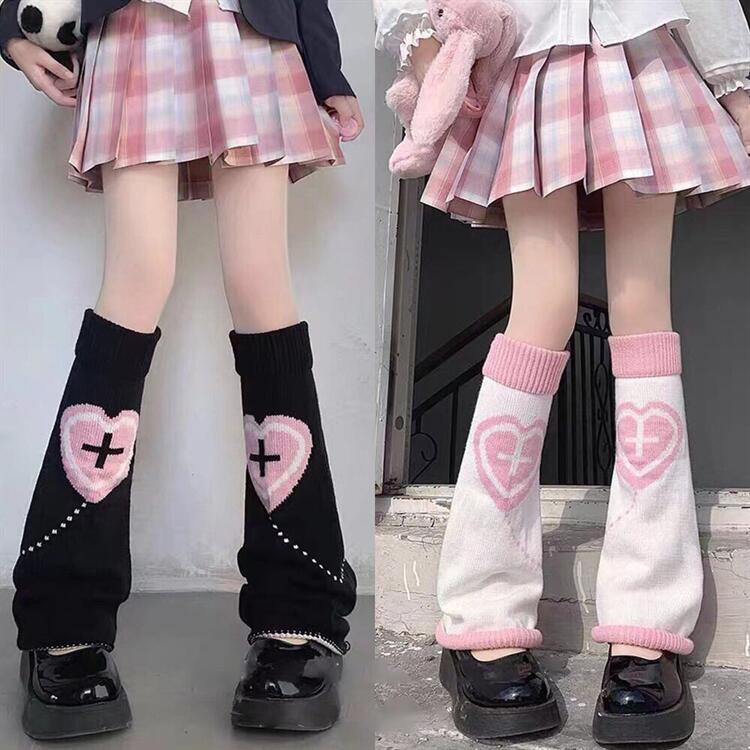 レッグウォーマー 十字架 ピンク 白 黒 レディース ブーツカバー V系 モード系 パンツ y2kファッション クロス かっこいい 派手 個性的 ヴィジュアル系 ファッション 地雷系 病み系 ファッショ 美脚効果 韓国 ファッション