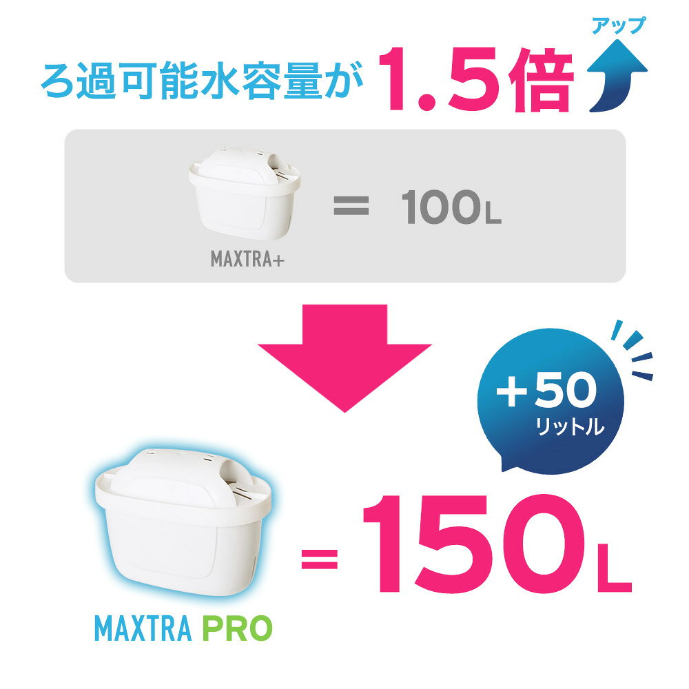 ドイツ本社製の高機能のカートリッジで、日本浄水器協会認定検査機関で交換期間2ヶ月可能な製品であることが、証明されておりますので、安全にご使用になれます。 製造は本社工場のドイツもしくはイギリスです。(並行輸入品です) BRITAのふるさとであり、ヨーロッパで最も厳格な水質基準を法的に規定しているドイツ本社製造のMAXTRAカートリッジで、正規品のグローバル仕様となっております。 パッケージデザイン等は予告なく変更されることがあります。本製品は、ドイツから取り寄せたヨーロッパ正規品です。 ドイツはヨーロッパで最も厳格な水質基準を法的に規定している国ですので、こちらの商品は大変品質の高いフォルターカートリッジとなっておりま す。 本商品のフィルターカートリッジは、ドイツだけではなく世界中で使用されているグローバル仕様の商品です。 本商品のMAXTRAPRO交換用カートリッジはドイツ本社で製造された並行輸入品ですが、日本で販売されているMAXTRA用BRITA浄水器ポッ トは各国で売られているポットと同一ですので問題なく御使用できます。 本商品は日本の家庭用品品質表示法・厚生労働省認定機関検査済みの商品です。 商品名 ブリタ浄水器カートリッジマクストラプロ【並行輸入品】 原産国 ドイツまたはイギリス 材料の種類 ポリプロピレン、ポリエチレンテレフタレート、50%バイオベースプラスチックを使用 ろ材の種類 活性炭、イオン交換樹脂 ろ過流量 0.15L/分(ブリタポット型浄水器本体をご使用の場合) 洗浄能力 遊離残留塩素(総ろ過水量150L、除去率97%以上、JIS S 3201試験結果) 使用上の注意 ・活性炭の微粒子を洗い流すため、ろ過した最初の2杯分は飲用せず3杯目から飲用してください。 ・ろ過されたお水は48時間以内にご利用ください。 ・水道水の飲用基準に適合した水でご利用ください。 ・ろ材の取り替え時期の目安は、使用水量、水質により異なります。 ・熱湯を含む温水は使用しないでください。 ・浄水器本体は定期的に洗浄してください。 ・1日2.5L使用した場合、カートリッジ交換時期の目安は約2ヶ月となります。 ・魚などの飼育には使用しないでください。 ・製造過程及び梱包の際、カートリッジの湿り気を保つようにしてあります。 ・カートリッジに水滴がついていることがありますが、正常な状態です。・水滴による商品の交換対応は致しかねます。 ・ろ過した水はできるだけ早くご使用ください。 ・本製品は日本仕様品とは異なるグローバル仕様の並行輸入品ですので、ブリタジャパンではなく、ドイツ本社の保証対象となります。