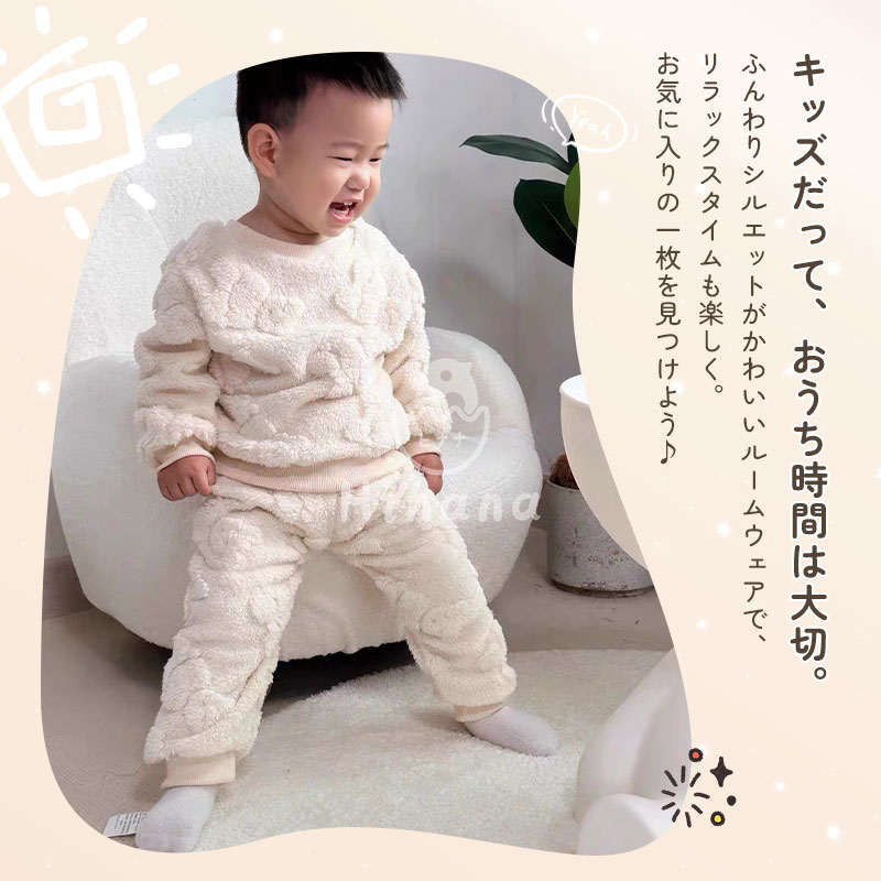 【高評価感謝★クーポンで1380円】もこもこ パジャマ 子供 クマ 冬 キッズ 女の子 男の子 ルームウェア 熊 上下セット 長袖 トップス ボトムス 無地 2点セット あったか 秋 可愛い 柔らか セットアップ 部屋着 ルームパンツ 子ども 暖かい 子供服 パンツ クマ