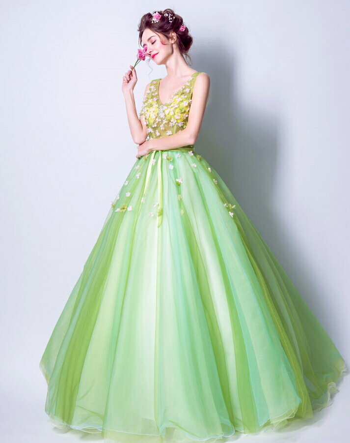 ウェディングドレス カラードレス グリーン フラワー flower 編上げ ドレス 春夏 秋冬 結婚式 披露宴 刺繍 プリンセスライン ミニドレス 二次会 パーティードレス ビスチェウエディングドレス マタニティウエディングドレス 演奏会 お嫁さん 花嫁♪dress-212
