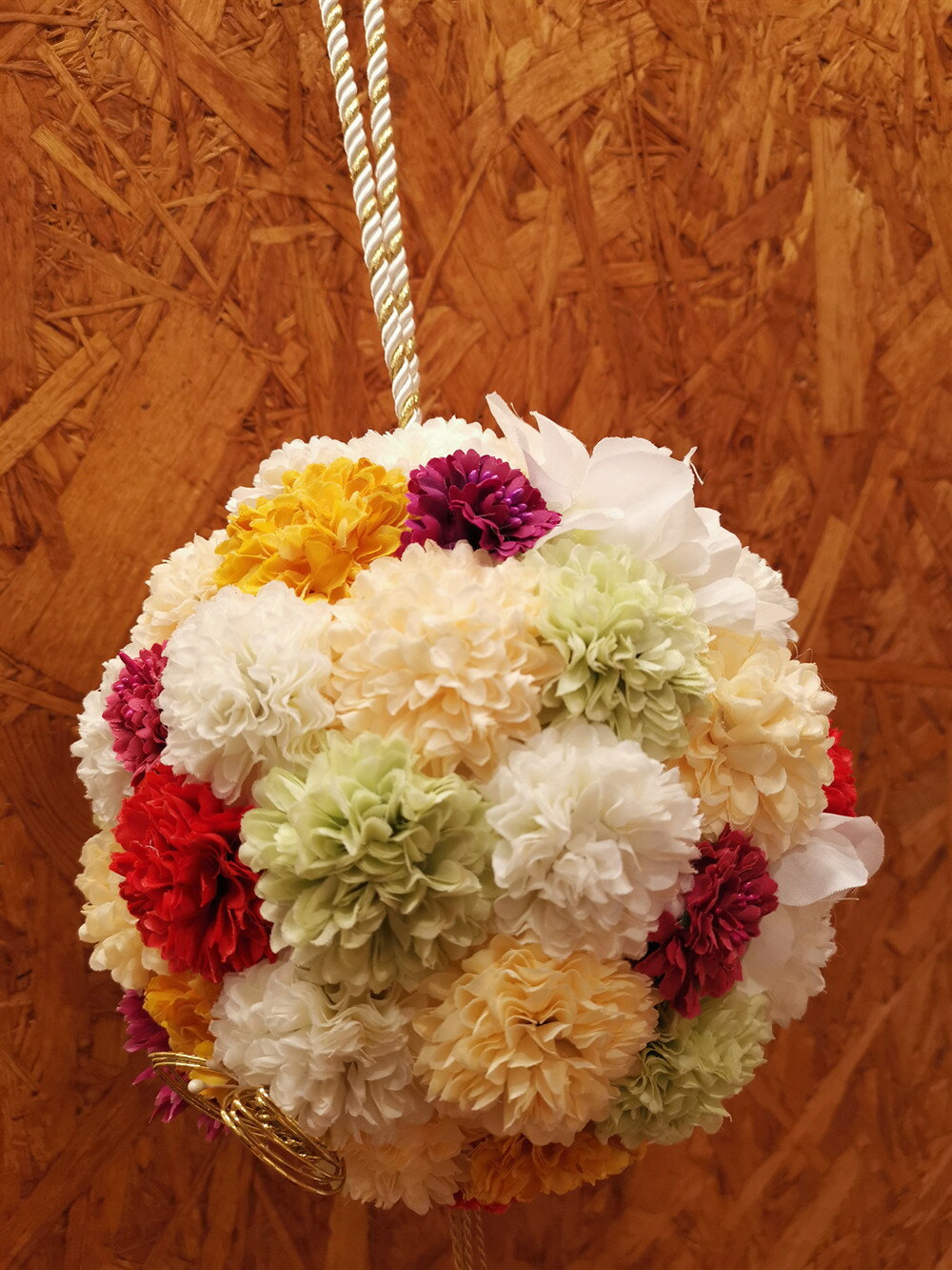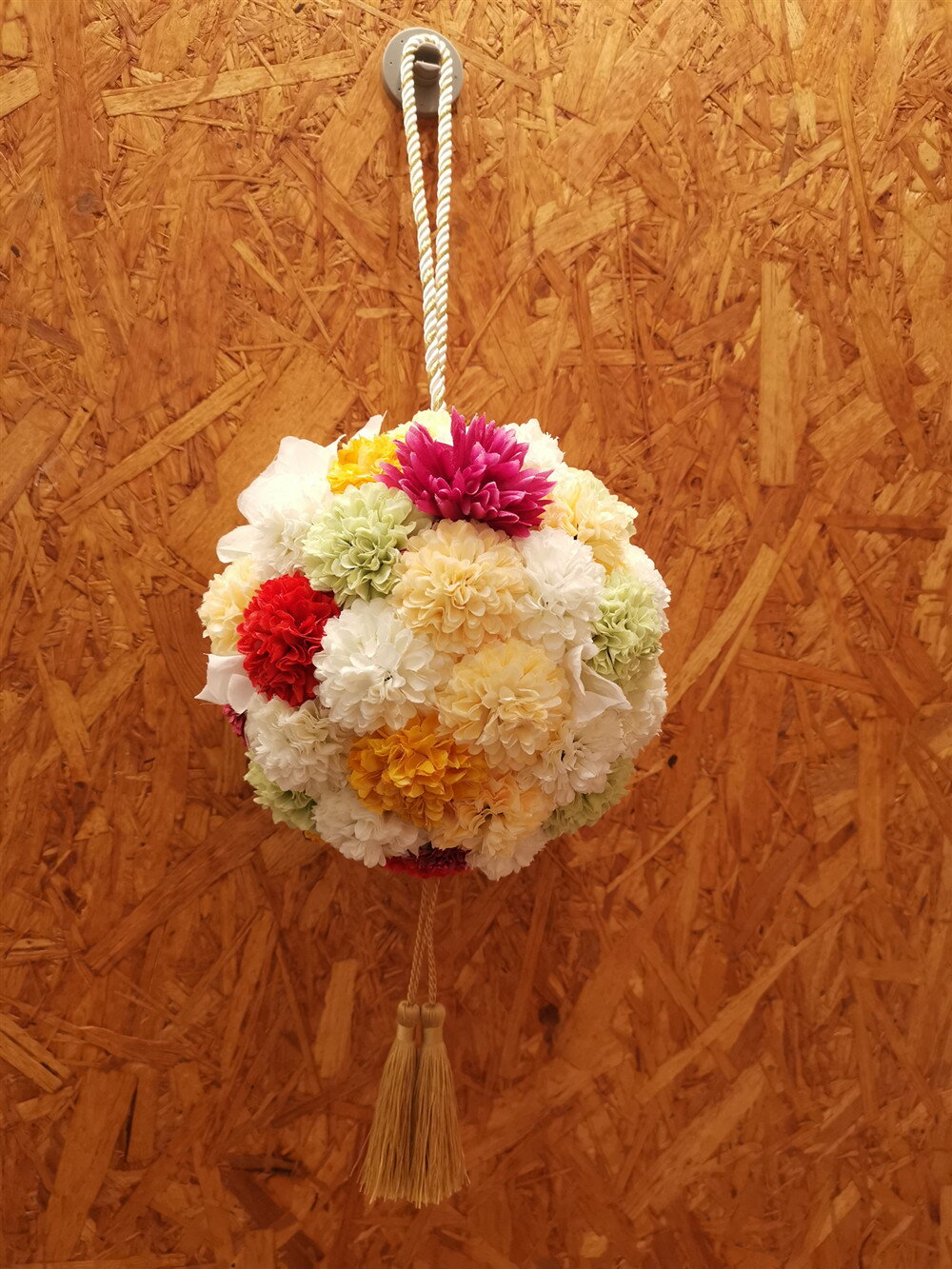 今なら、お花の簪を無料で3個付けます。 商品詳細 素材:造花 サイズ:ボールの高さ約18cm ※写真のイメージは18cmの物でございます。 メインお花のサイズ:直径約5cm 紐のカラー:ワインレッド ゴールド レッド×ゴールド ゴールド×ホワイト ※他のカラーをご希望の場合はお問い合わせ下さい。 ※手作りの為、お花の配置等は若干変わる場合がございますのでご了承下さい。 ※他のカラー等をご希望の場合はご相談下さい。 ※心を込めて製作致します。