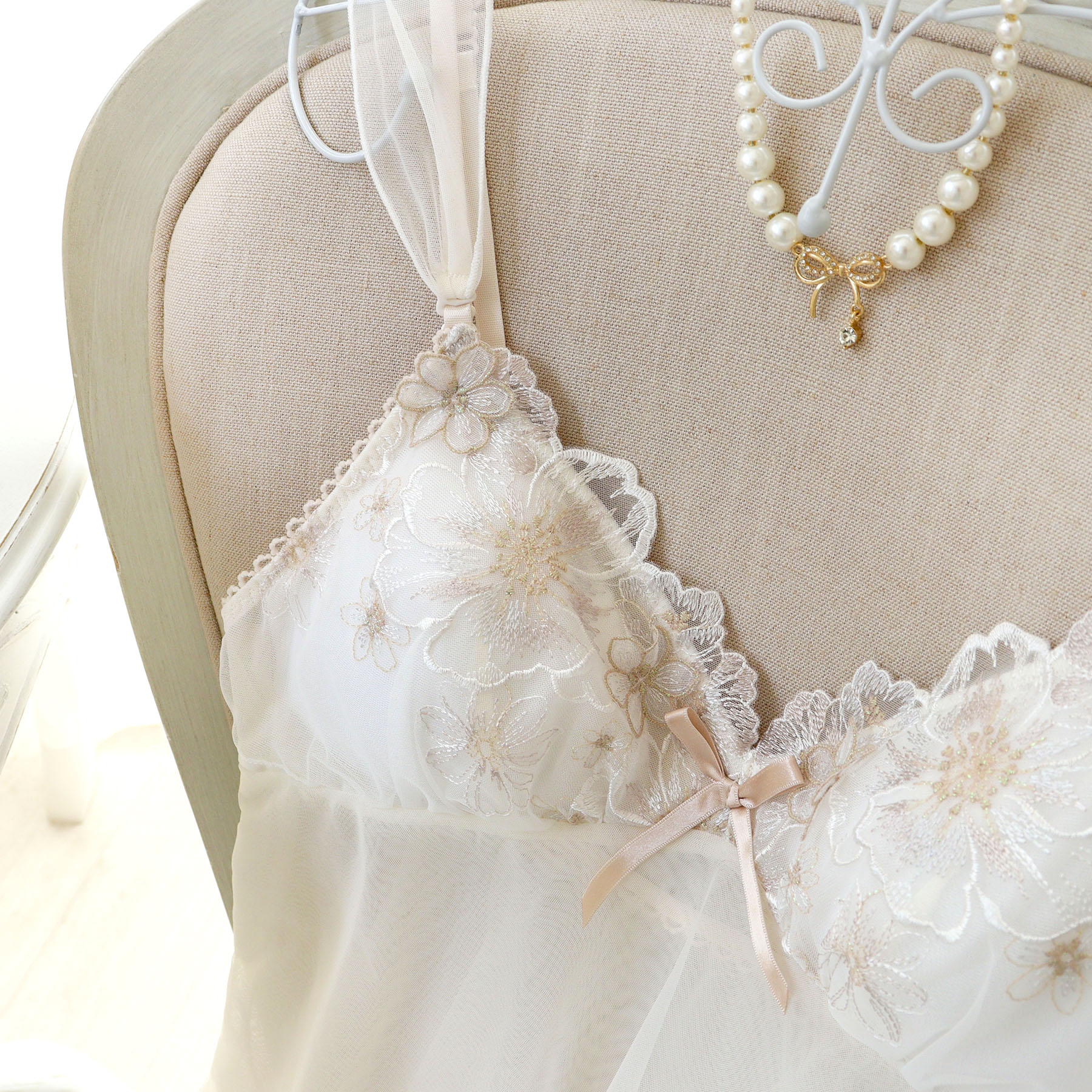 メーカー希望小売価格はメーカーカタログに基づいて掲載しています ↑ファイルサイズ大きめのカタログデータpdfになります↑【ふんわり舞うアネモネのお花にときめいて】アネモネのお花を大胆に刺繍したレースは、存在感あふれる印象の中に繊細なステッチをあしらうことで、可愛らしくガーリーに仕上がりました。その周りにはラメ糸をたっぷりとほどこした小さなお花のアップリケを重ねて、奥行き感をプラス。様々なお花がレース全体に咲きほこっているような、華やかさを演出しています。ストラップにはメロウ加工したソフトチュールをあしらい、リサマリ初の2WAY仕様に。ふわふわとした軽やかさに思わずきゅんとする、遊び心を詰め込みました。身生地は透け感を楽しめるおそろいのチュール素材で、裾に切り替えとギャザーを入れることで、女の子らしいフレアシルエットが完成。アシンメトリーにお花のアップリケを散りばめました。カラーは淡いグラデーションでまとめて、チュールやアップリケのシアー感を引き立たせた、ロマンティックなコレクションです。<アイテム特徴・着用感>身生地はソフトチュール素材を使用しております。さらりとした気持ちの良い着心地で、ワンピースなどのお洋服のインナーとしてもご着用いただけます。<サイズ>M:バスト 79〜87cm(総丈:約75cm)L:バスト 86〜94cm(総丈:約75cm)<商品仕様>・ストラップ長さ調節可能(一部取り外し不可)・身生地の伸縮性:若干あり<関連アイテム>お揃いのアイテムは以下よりご確認ください。・64500 ブラジャー(B・C)・64501 ブラジャー(D・E・F)・64502 ブラジャー(G・H)・74500 ノーマルショーツ・74501 レースショーツ・74502 リボンショーツ・74506 サニタリー・14501 カップ付スリップ ブラジャー(B/C) ブラジャー(D/E/F) ブラジャー(G/H) ノーマルショーツ(M/L) レースショーツ(M/L) リボンショーツ(M/L) サニタリーショーツ(M/L) カップ付スリップ(M/L) 当該商品は自社販売と在庫を共有しているため、在庫更新のタイミングにより在庫切れが発生する場合がございます。 在庫切れの場合、商品のキャンセルをお願いする場合がございます。 検索用キーワード:リサマリ RisaMagli レース 花柄 フラワー 刺繍 クリーム ピンク パープル