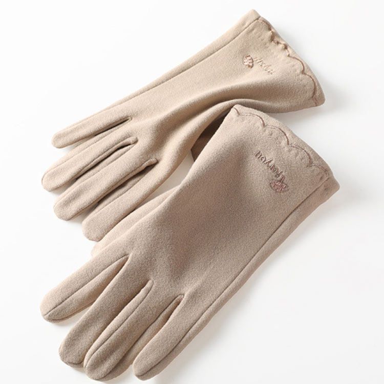 【保温性抜群、秋冬防寒に最適】 秋から冬にかけて寒くなるシーズンには寒さ対策として手袋はかかせませんが。ドラロン素材を使用し通気性も良い、中はあったか裏地付き、防風防寒性も抜群です。柔らかくてスキンに良く、快適で柔らかく、シンプルでおっとりしてきれいです。【落ち着いたデザイン】 落ち着いたミックスカラーでいろんなコーデにも合わせやすく。冬ファッションの小物アクセントにオススメ。シンプルなフォルムと人気の模様で好感度もアップ。上品な雰囲気であらゆるコーディネイトに合わせて頂けます。かばんにそっと忍ばせていつでも着用できますよ。柄違いで家族や友達へのクリスマスプレゼントとしても最適!【付けたままスマホ対応OK!】 人差し指の先端部分に導電繊維を使用しているので、手袋をしたままスマホを操作可能な便利な防寒小物です。通勤ヤ通学をはじめ、お手掛けの際も手袋を脱がずにスマートフォンを使うことができます。寒い屋外でも楽しく過ごせるスマホ対応手袋です。【年齢問わず幅広いシーン】 冬の通勤、通学や凍えるような夜のデートで一番辛いのが手先の寒さです。手袋で防寒しておけば安心です。裏地は起毛ドラロン調素材で密に詰まった内側の総毛皮が温まった空気をしっかり保温します。 サイズ 刺繍 ボタン サイズについての説明 手の幅8.5cm 総丈23cm 中指の長さ8cm ※上記サイズは平置き実寸になります。サイズ表の実寸法は商品によって1-3cm程度の誤差がある場合がございます。 素材 ポリエステル 色 グレー ベージュ ピンク ブラック 備考 ●サイズ詳細等の測り方はスタッフ間で統一、徹底はしておりますが、実寸は商品によって若干の誤差(1cm〜3cm )がある場合がございますので、予めご了承ください。 ●商品の色は、撮影時の光や、お客様のモニターの色具合などにより、実際の商品と異なる場合がございます。あらかじめ、ご了承ください。 ●製品によっては、生地の特性上、洗濯時に縮む場合がございますので洗濯時はご注意下さいませ。 ▼色味の強い製品によっては他の衣類などに色移りする場合もございますので、速やかに(脱水、乾燥等)するようにお願いいたします。 ▼生地によっては摩擦や汗、雨などで濡れた時は、他の製品に移染する恐れがございますので、着用の際はご注意下さい。 ▼生地の特性上、やや匂いが強く感じられるものもございます。数日のご使用や陰干しなどで気になる匂いはほとんど感じられなくなります。