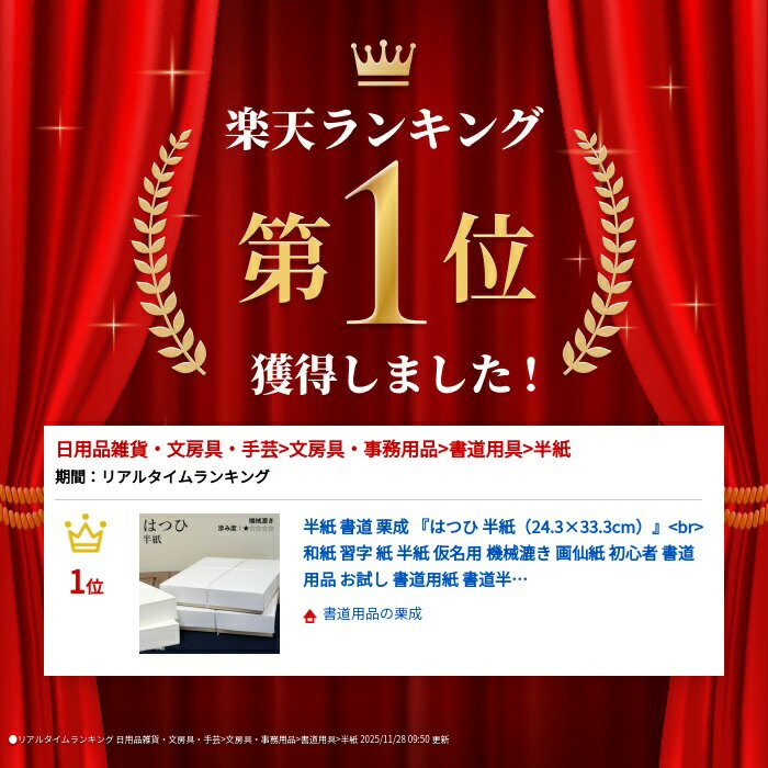 半紙 書道 栗成 『はつひ 半紙(24.3×33.3cm)』 和紙 習字 紙 半紙 仮名用 機械漉き 画仙紙 初心者 書道用品 お試し 書道用紙 書道半紙 練習 練習用 100枚 1000枚