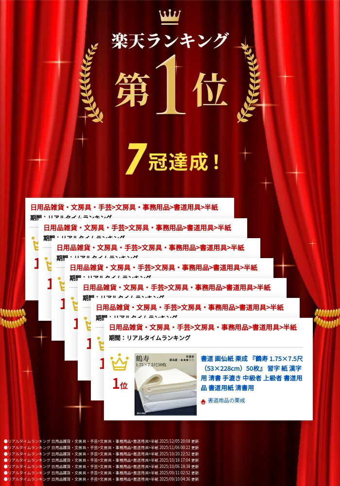 書道 画仙紙 栗成 『鶴寿 1.75×7.5尺(53×228cm)50枚』 習字 紙 漢字用 清書 手漉き 中級者 上級者 書道用品 書道用紙 清書用