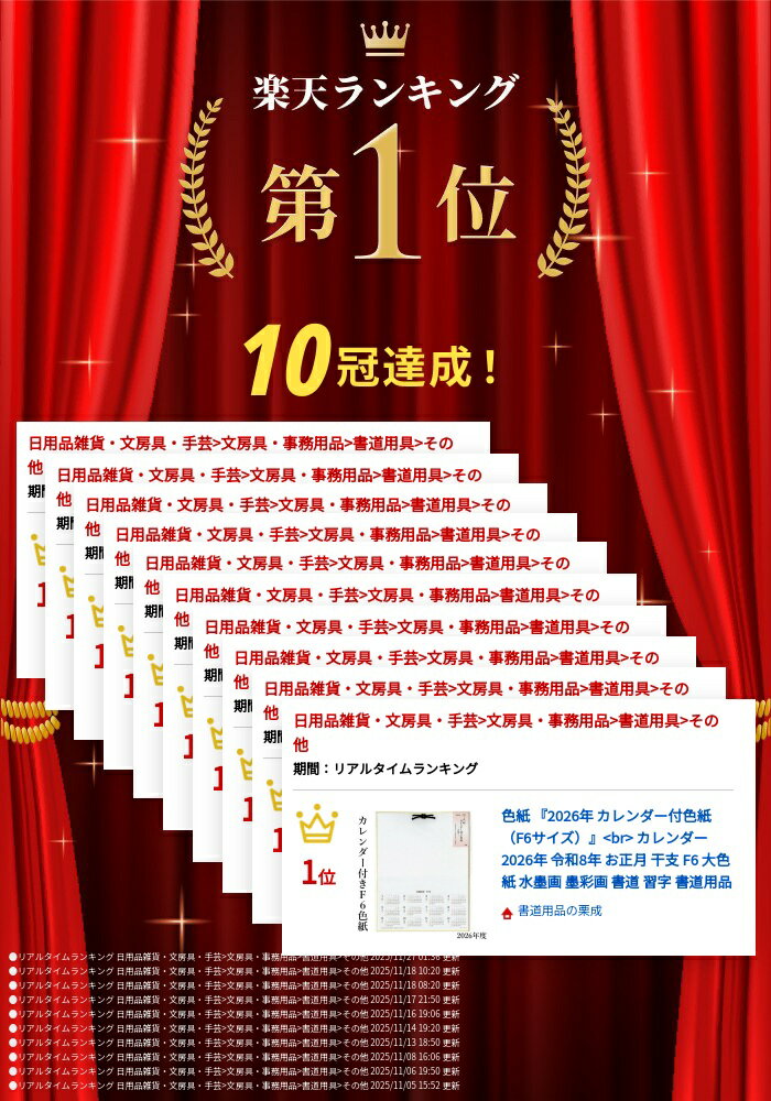 色紙 『2026年 カレンダー付色紙(F6サイズ)』 カレンダー 2026年 令和8年 お正月 干支 F6 大色紙 水墨画 墨彩画 書道 習字 書道用品