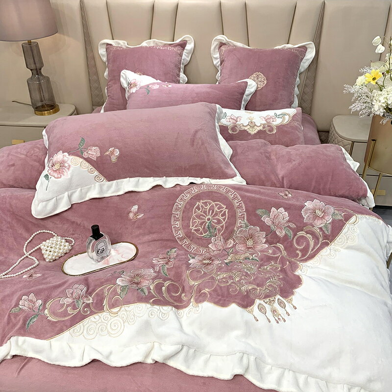 A001469BS40冬用フランネル寝具 ワイドダブル ベッド用品4点セット ボックスシーツ