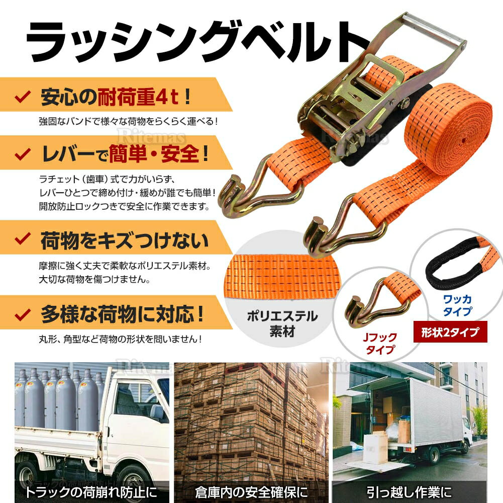 【エントリーでP10倍】 ラッシングベルト ワッカ トラック用 幅 50mm ラチェットベルト ラチェット式 ラチェット バンド ベルト ロープ 固定 荷物 荷物固定 荷台 固定側0.4m 巻側6m 破断荷重4000kg ラチェット式 タイダウンベルト 1本set 1年保証