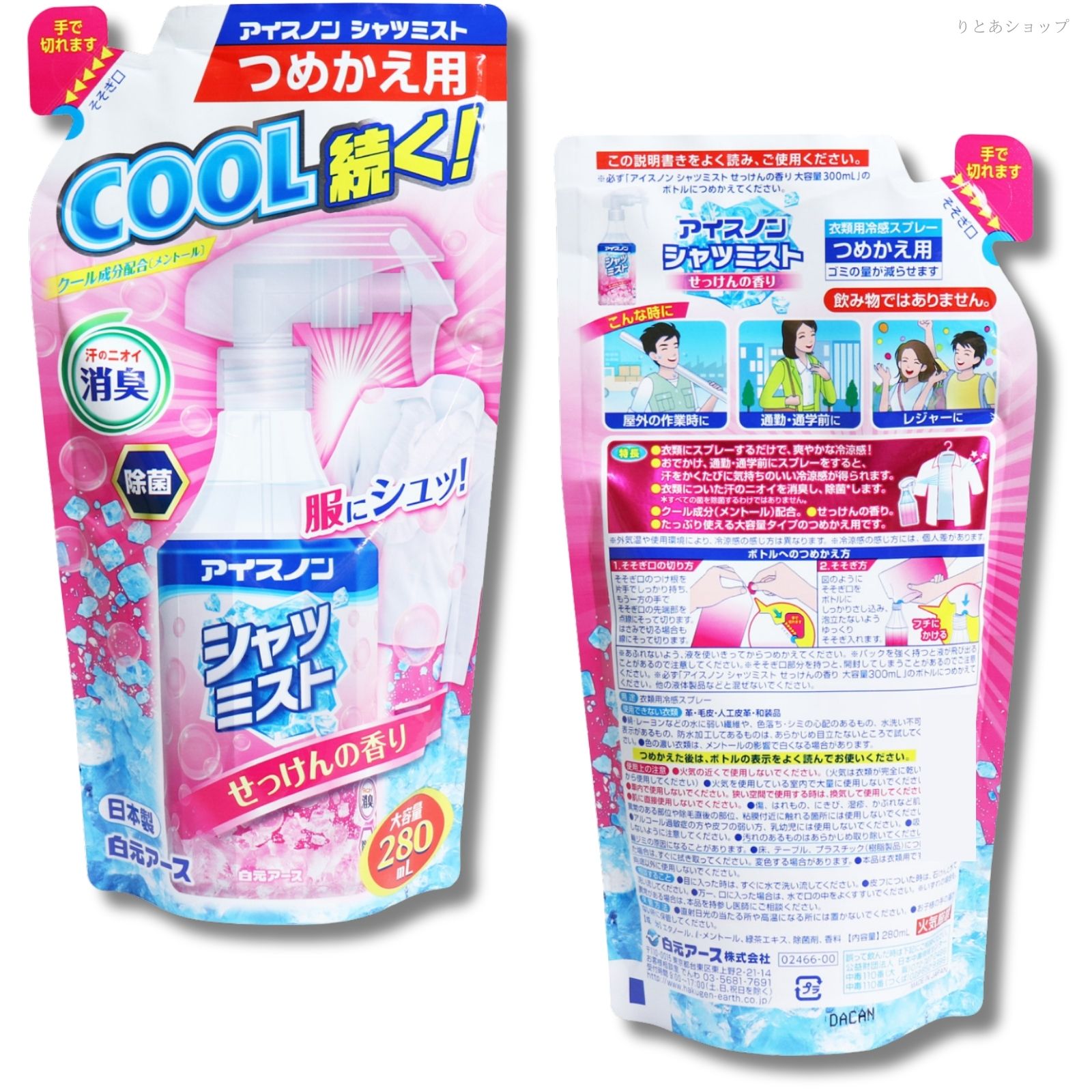 アイスノン シャツミスト せっけんの香り 詰め替え 280ml 大容量 除菌 消臭 冷感 詰替 替 【2個セット】