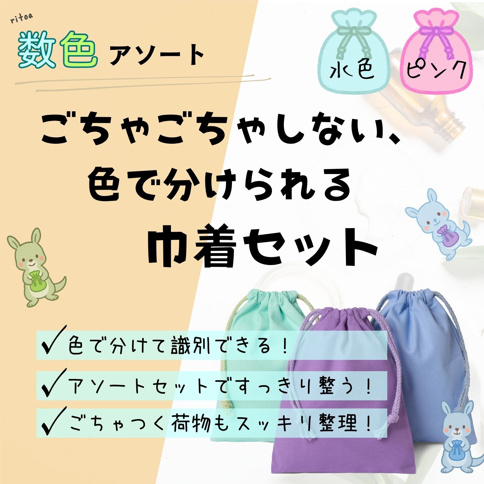 巾着袋 無地 巾着 綿 コットン カラー カラフル 子供 女性 レディース 小 中 大 選べる3サイズ
