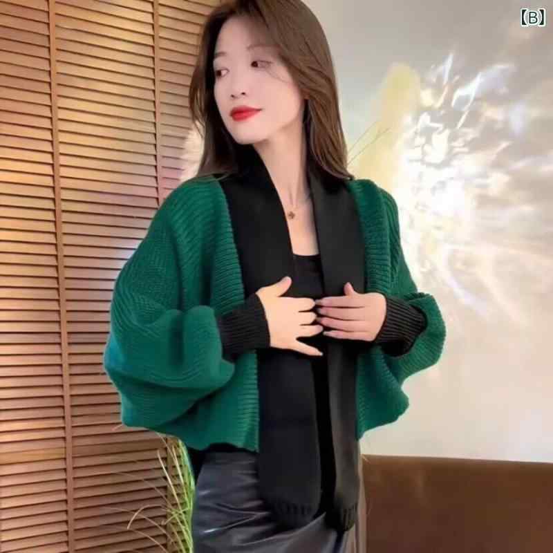 カーディガン レディース オールシーズン 切り替え バットスリーブ ニット コート ショール スタイル リラックス フィット トップス 短め オープン 柔らか素材 軽量 暖か ゆったり シルエット 日常使い