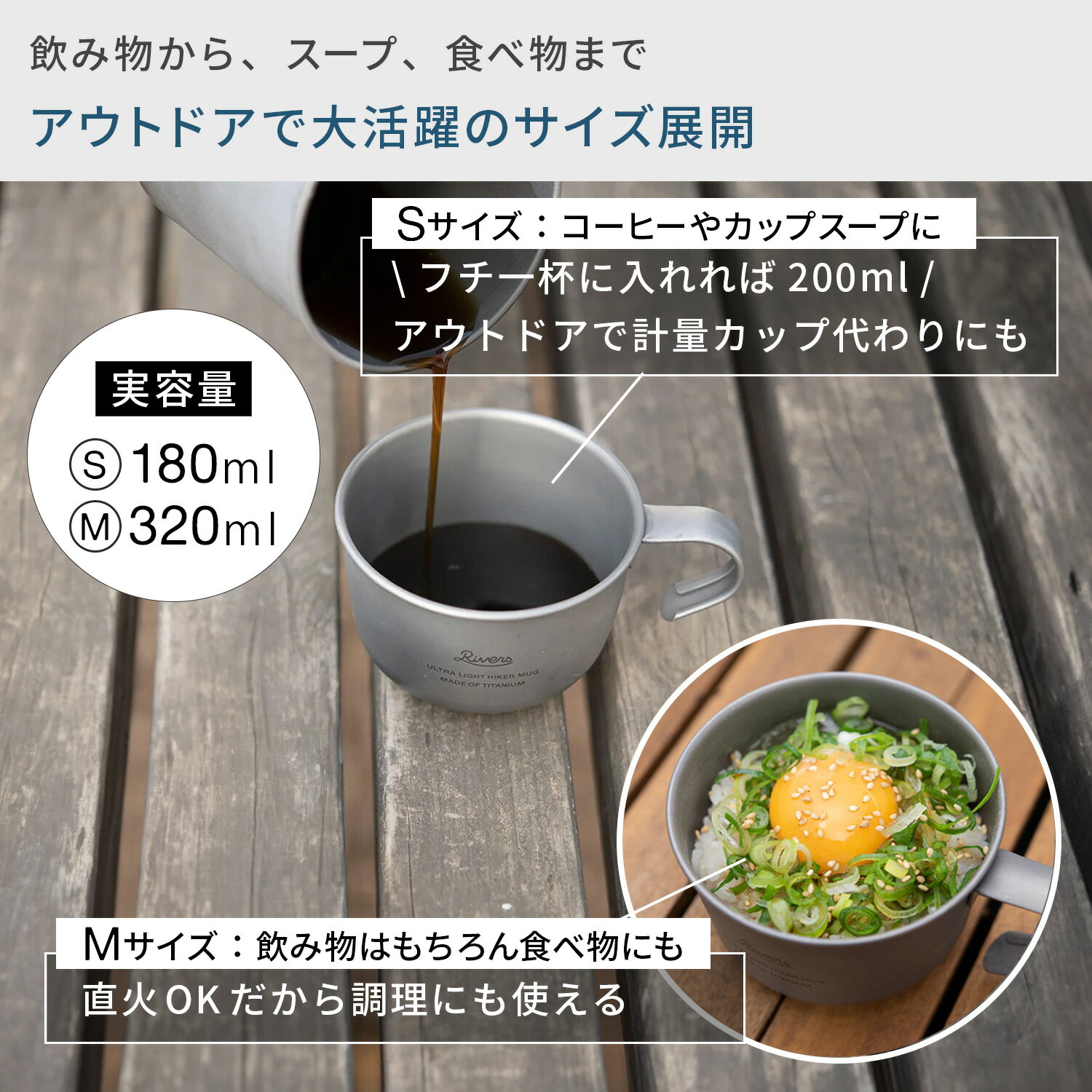 \レビューで特典/ウルトラライト ハイカーマグS・M|キャンプ コーヒー カップ 直火 マグカップ チタン コップ アウトドア 軽量 金属 コンパクト 山 珈琲 おしゃれ キャンプ用品 RIVERS リバーズ公式 ギフト プレゼント