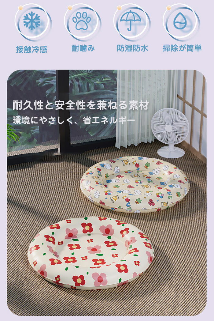 商品コード rmq-ss-cw82 商品詳細 【電気不要&経済的な暑さ対策】: 冷却マットは冷蔵不要で、愛するペットが乗るだけで冷却効果を実感でき、エアコンや扇風機を使わなくても涼しく過ごせることができます。エコな素材で作られたクールマットは、冷感ジェル自体の高い熱伝導性と拡散性を利用しており、ペットの体温を効果的に下げ、いつでも快適な状態に保ちます。犬や猫の熱中症対策グッズにとしては最適です! 【耐久性と安全性を兼ねる素材】ペット 冷感マットの表面は高品質のPVC素材で作られており、とても頑丈で擦れに強い、丈夫な生地でカシャカシャせず滑らかで寝心地よいです。ペットさんが多少引っ掻いても傷や破ける心配はありません。高分子ゲルを採用し、無毒無味で、安心して長期間使用でき、環境にやさしく、省エネルギー。※噛み癖のあるペットさんにはお勧めしません。 サイズ S (おすすめ体重:2.5kg以内)44*44cm M (おすすめ体重:7.5kg以内)54*54cm L (おすすめ体重:10kg以内) 64*64cm カラー 2colors 素材 アイスジェル+PVC織り 生産国 中国 注意事項 ※お客様のモニター環境により実物の色合いと若干お色目が異なる場合がございます。 ※商品生地、色合い、コサージュやその他装飾部品の色やデザイン等、生産時期によって、差異が生じます。 そのため、同じ商品を複数点ご購入の場合、場合によって色、コサージュのデザイン等差異がでる場合がございます。ご了承ください。 ※モデルに小物を使う場合がありますが、 商品内容に含まれていないのでご了承してください。 ※着用・保管頂きます際には他のものとの摩擦などにより色移りや傷になる場合が 御座いますのでご注意ください。