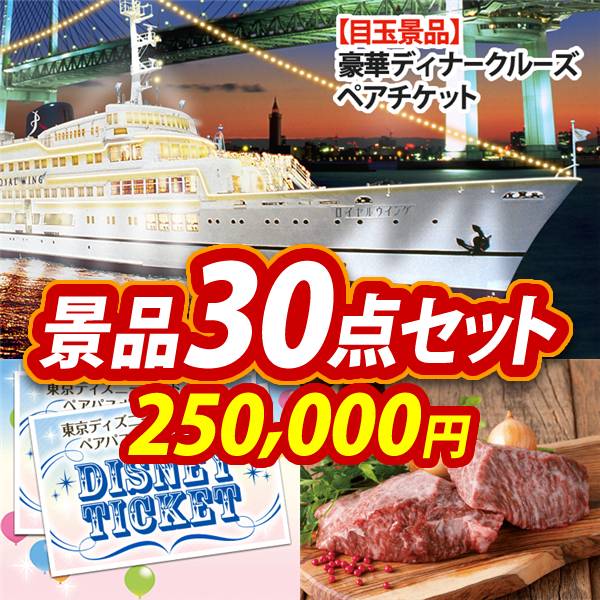 ランキング受賞★ 忘年会景品 30点セット 特大パネル 豪華目録 ビンゴ 結婚式 披露宴 二次会 忘年会 新年会 ゴルフコンペ 景品セット 【豪華ディナークルーズ ペアチケット、ディズニーペアチケット】 送料無料 特大パネル 豪華目録付き